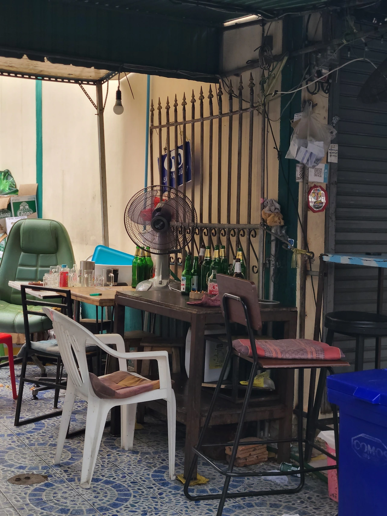 밤만 되면 가게 주인과 동네 외국인들이 모여서 한 잔 거하게 하는 가맥집 스타일의 가게는 보아하니 어제도 거하게 술판이 벌어진 것 같다. 술병이 잔뜩 쌓여있다. 치앙마이에서 산책을 할 때면 그냥 일반 가정집이나 가게인데도 한국과는 크게 다른 모습이 흥미롭고 즐거움으로 다가온다.