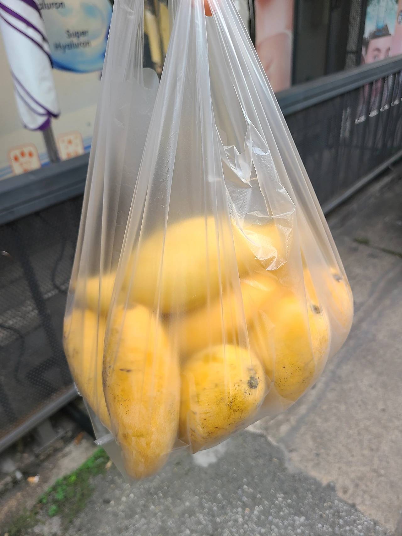어제 망고 하나 들어간 스무디 50바트 줬는데 오늘 망고 2kg에 40바트를 줬다 하...하하하핳
