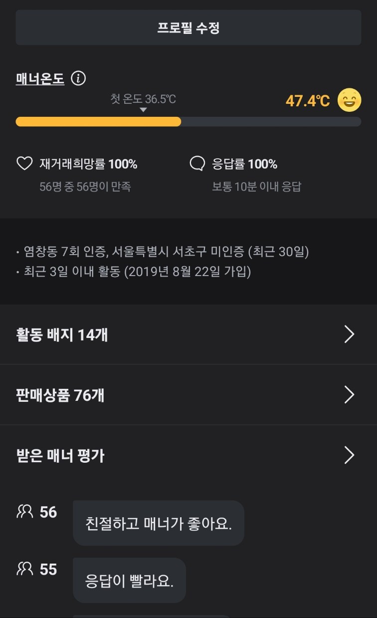 당근온도가 거의 100도에 육박하는 분들은 어떤 분들인지 궁금해졌다