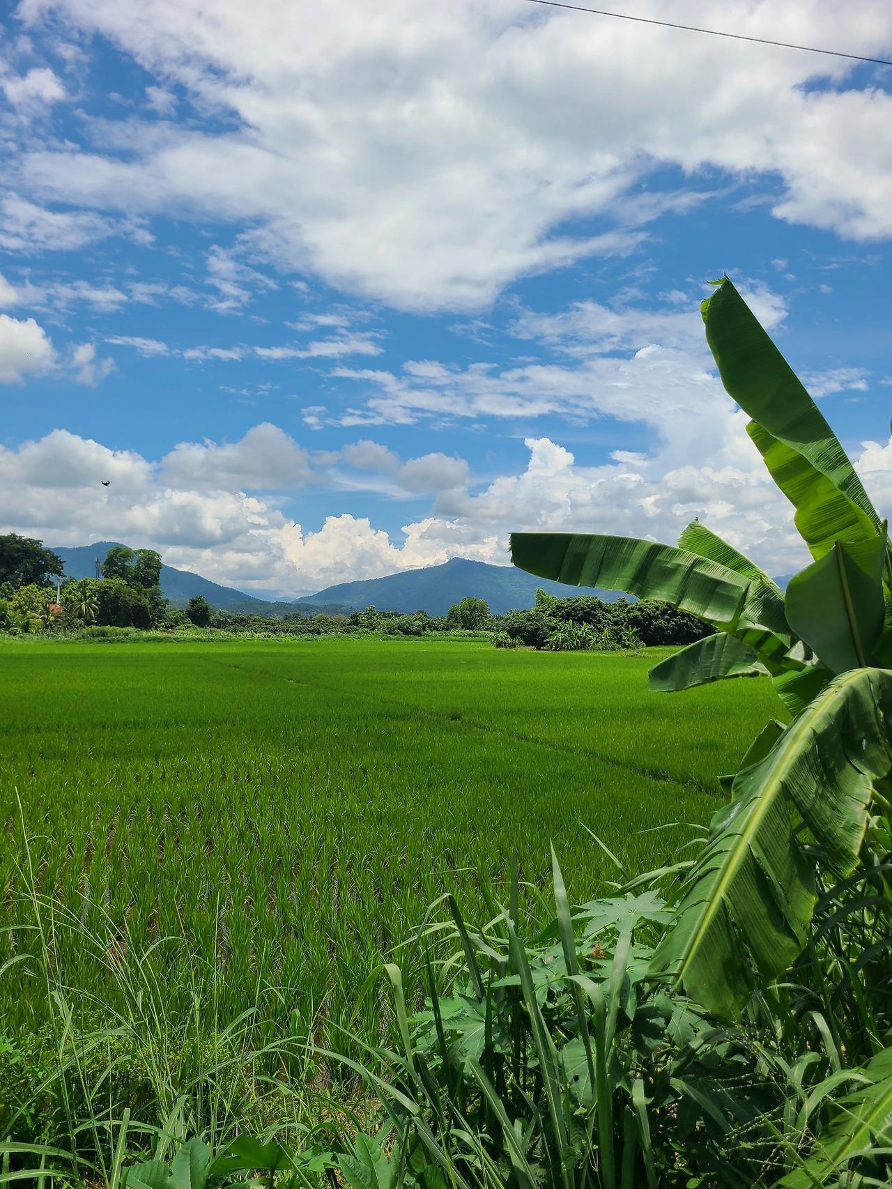 구글맵으로 네비를 찍고 달리면서도 샛길이 발견되면 큰 도로를 벗어나서 샛길로 들어섰다. 큰길에서 운전하는 것을 싫어하기도 하고 치앙마이 생활 1년의 경험상 샛길로 빠지면 길의 풍경이 훨씬 더 아름답다는 것을 알고 있기 때문이다. 실제로도 중간중간에 이 작은 길들이 너무 예뻐서 오토바이를 멈춰 세우고 사진을 찍기에 바빴다. 때마침 날씨가 어찌나 이리도 아름답던지.