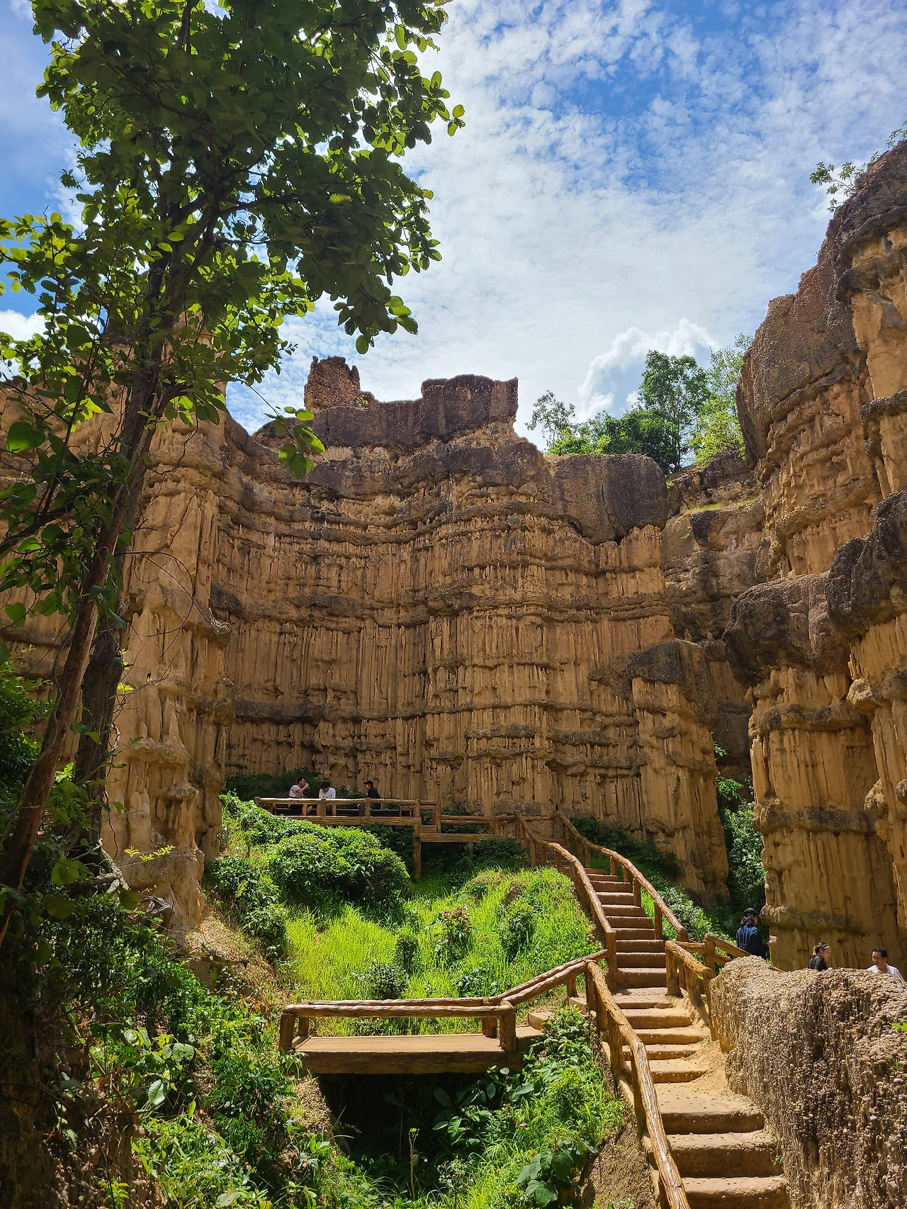 협곡 입구에서 협곡까지는 경사가 꽤 있는 계단을 오르내리는 길을 30분 정도 걷는 짧은 등산로가 조성되어 있다. 등산의 나라에서 온 한국인에게는 그렇게 낯설지는 않은 구성이라 룰루 랄라 신나게 걸었다. 워낙 햇볕이 뜨거워서 땀이 줄줄 흘렀지만 꽤나 잘 걸었다. 치앙마이에 온 지 얼마 되지 않았을 때는 술을 끊는 초기여서 체력이 바닥이었는데 이제는 이 정도의 등산은 별로 힘들지 않은 것을 체감하고는 괜시리 뿌듯했다.