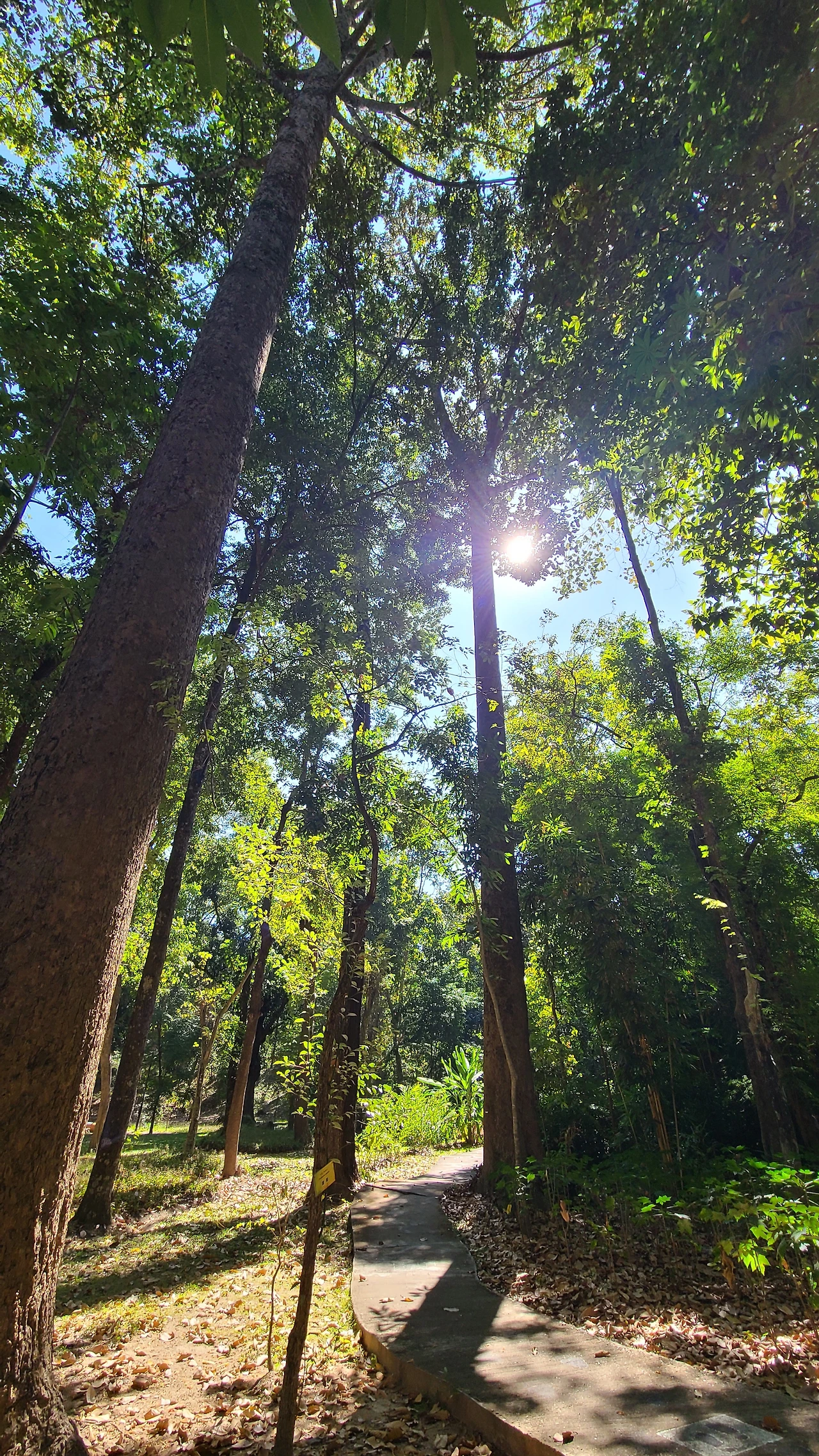 지금 앉아있는 공원은 치앙마이 대학교 정문을 지나 도이수텝 방향으로 조금만 오르다 보면 나오는 작은 공원이다. 관광객이라면 도이수텝 사원을 가는 길이라 여길 들를 일이 별로 없는 곳인데 생각보다 괜찮다. 울창한 숲에 산책로가 조성되어 있어서 20~30분 동안 길을 계속 걸으며 사색에 잠기기 좋다. 한국에서는 보기 어려운 사이즈의 나무를 보고 있노라면 잠시간 어디 정글 속에라도 들어온 기분이다. 햇빛을 쬐며 숲 길을 걷는 것은 확실히 정신건강에 이롭다는 생각이다.