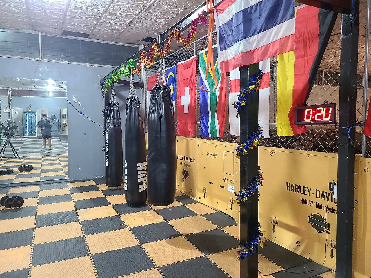 수업이 끝나고 샌드백을 붙잡고 배운 걸 복습하고 간다