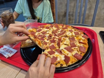 페퍼로니 피자. 콜라를 양껏 시키고, 얼굴만 한 망고 아이스크림도 먹는다. 원하는 걸 다 먹고 나자 그는 곧바로 귀가를 종용했다.