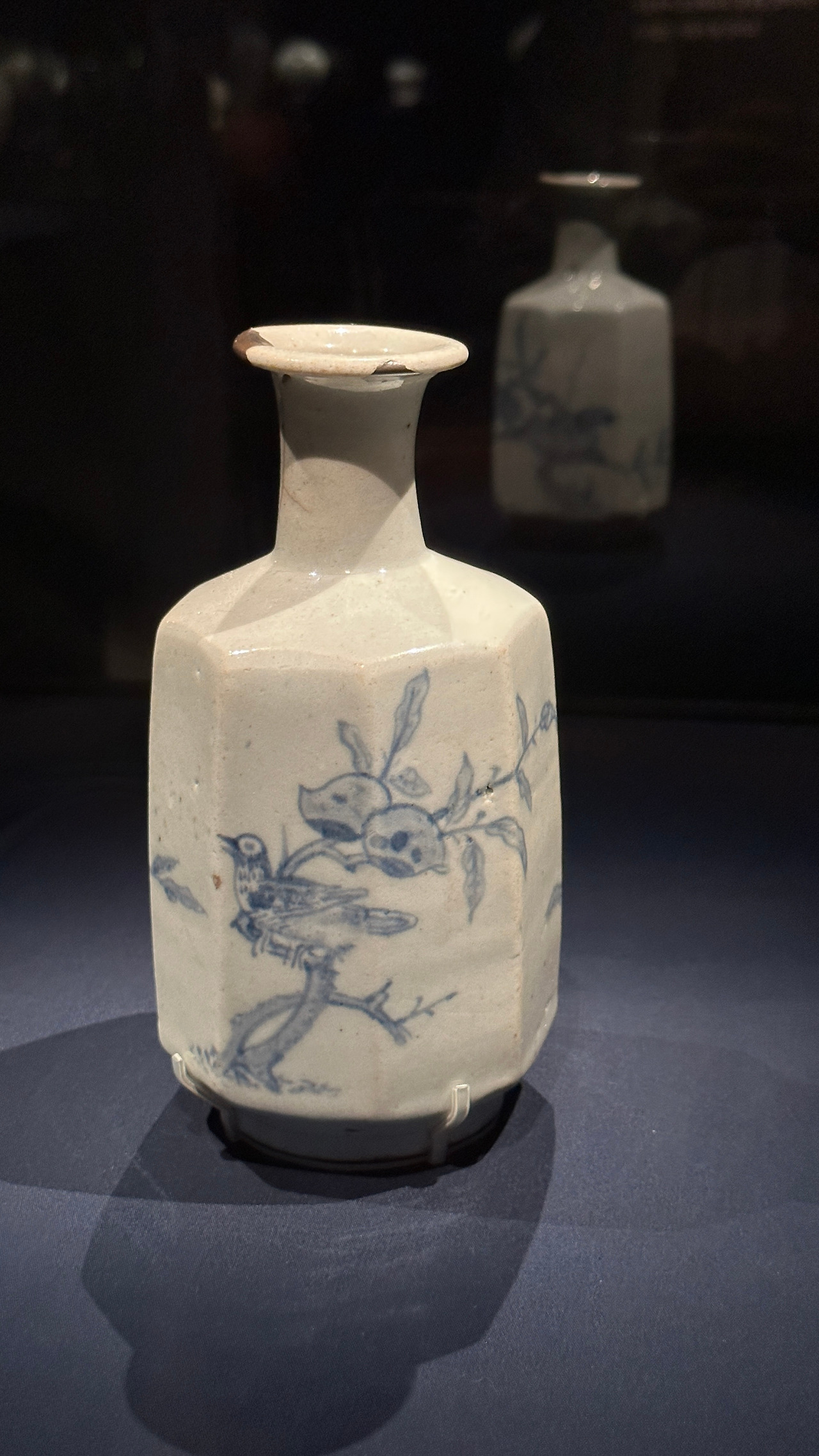 백자청화 화조문 팔각통형 병 (개인 소장, 보물)
