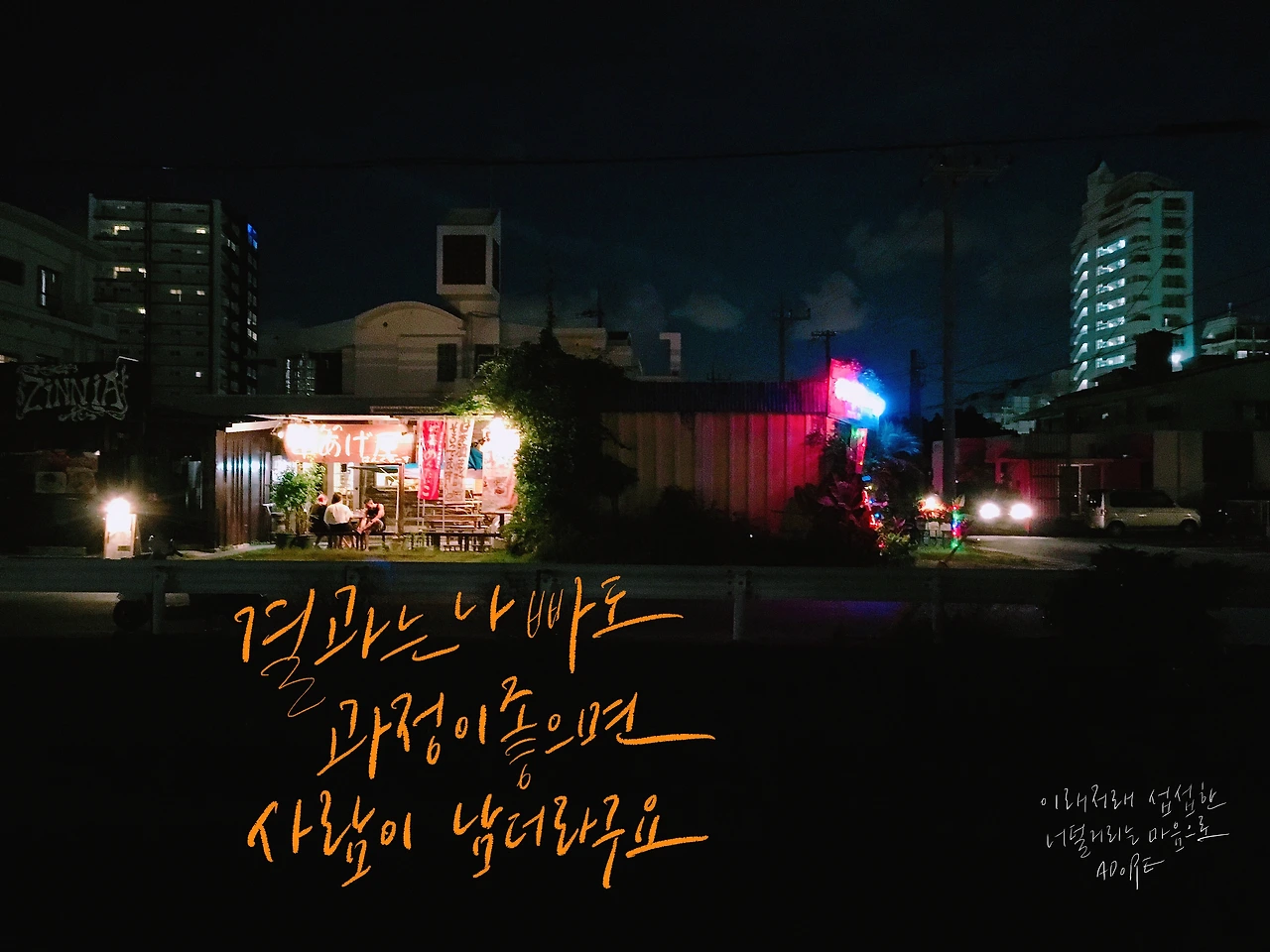 얼마전 내가 본인과 친하다고 생각하시는 어딘가의 대표님께서 ‘멋있을 것 같아서’를 이유로 본인 회사의 서브 카피를 캘리그라피로 써주길 부탁하셨다. 물론 비용은 정으로. 그 외 본인 커플의 기념일에 만들 현수막 문구를 밥 한 끼에 써달라는 사람도 있었고, "간단하니까" 한 문장 써달라는 요구는 수도 없이 많았다.