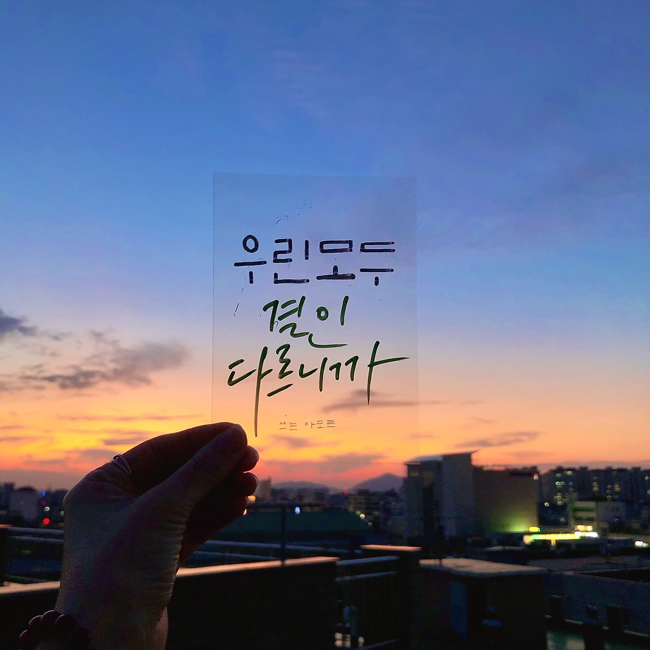 같은 길을 가기엔 우리, 너무 결이 다른 사람들이다. 똑같은 물감을 가지고도 각자 다른 그림을 그리며 자신만의 스타일을 만들어가는 화가처럼 우리도 각자의 결로 각자의 삶을 살면 되지 않을까. 많은 사람들이 가는 결을 쫓다 보니 어느 순간 물음표 투성이인 나를 발견했다. 그리고 생각했다. '많은 사람들이 선택하는 것일지라도 내 결이 아니었기 때문에 자꾸 고민하게 되는 거였어'