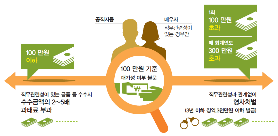 위 그림은 청탁금지법의 '금품등 수수 금지 규정'을 한 눈에 보여준다.