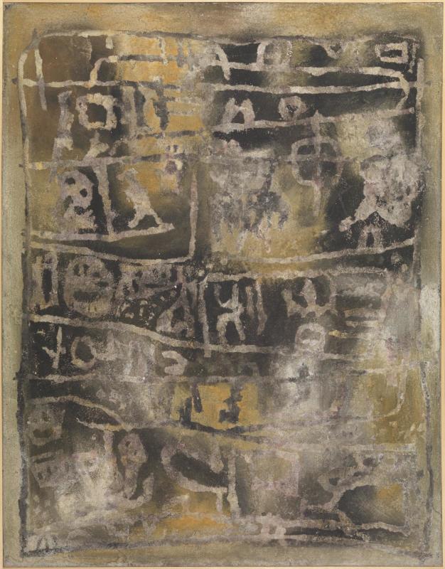 미쇼의 움직임 mouvement으로 접근하려 했던 언어의 심연은 동시대 추상화가 이응노의 쓰기에서도 엿보인다. 다만 화가의 필묵은 전통의 경계를 넘어 다양하고 생소한 재료들과의 결합, 그리고 쓰기와 그리기, 붙이고 긁는 행위로 그 변이형들을 무한하게 생성하면서 성좌적 공명을 중층적으로 확장해간다. 더욱이 초기 콜라주 형식은 쓰기 행위에 관한 본래적 이미지를 탐색하게 하는데, 종이에 쓰기라는 전형성에서 탈피하여 "종이로 그린 서체"로 해석되었던 일련의 작품들이 그러하다. 마치 고대 벽화의 이미지를 연상케 하는 그의 쓰기는 운필에 의한 생동감과 파피에 꼴레에 의한 재료적 구성이 결합되어 동시대 문자 추상과는 다소 이질적인 감성으로 다가온다. 전통적인 획과 여백의 상호 교차보다는 오히려 해체와 구성의 상응 관계가 이 쓰기를 기술하기에 더 적절한 개념일 듯하다. 필묵의 흔적들을 뜯고 붙이는 행위뿐만 아니라 상이한 문자의 획을 해체하고 새롭게 문자적 구성을 시도했던 작업들 역시 극단의 성좌로 읽힐 만하다.