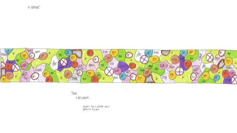 정원은 인공적인 것과 자연적인 것, 원경과 근경, 안과 바깥이 뒤섞여 있어, 마치 우회하던 요안나의 지면 속을 걷고 있는 것만 같았다. 그렇게 그녀와 함께 <정원 만들기 Gardening (piknic)>의 계단을 따라 오르던 중 낯선 기호들의 패널 앞에 멈춰 섰다. 정원사가 그려낸 설계도면이 여느 상점의 상품들처럼 레일을 타고 걸려 있다. 패널 한 장 한 장을 밀어가면서 이 뜻 모를 기호들이 내뱉고 있는 소리들에 가만히 주목하다가 갑자기 ‘아!’하고 탄성을 질렀다. 마치 화학 표식 같은 그 기호들은 다름 아닌 정원사가 불러낸 식물들의 이름이었다. 그에게는 굳이 꽃의 형상과 무늬가 필요치 않고, 추상된 기호만으로도 멋진 정원이 상상되었던 것이다. 내게는 신비롭기 그지없는 일이다. 그 기호들이 특별한 장소의 식물들과 함께 나타났을 때, 문득 정원사의 언어가 아담의 언어와 가장 가깝게 닮아 있을 거란 생각이 스쳤다. 그에게 기호와 식물은 하나였다. 감각적으로 전혀 유사할 것 없는 그 둘이 하나인 것이다. 기호와 소리와 형상과 식물이 직접적으로 연결되는 정원사의 신비한 능력이, 사전을 대조해가며 굳이 이름을 기억해내려던 나의 억지스러움에 쓴웃음을 짓게 한다. 축약된 기호들과 숫자들에 적대적이었던 나는, 회계장부에 매료된 요안나처럼, 이 기호의 정원에 빠져 들기 시작했다.