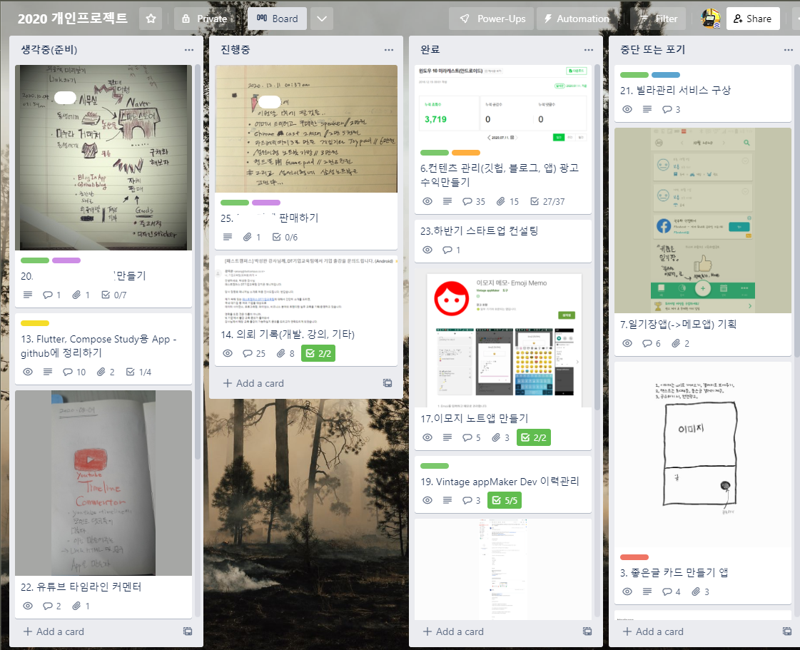 2020년 Trello 이 중에서 2년 후에 완료시킨 것도 있다.