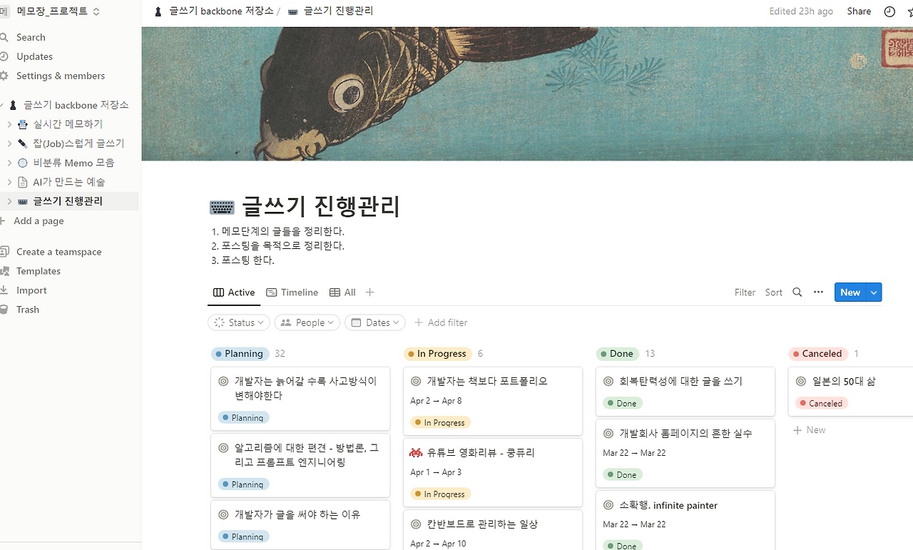 notion에서 칸반보드 활용(데이터에 대한 개념이 있어야 한다. 러닝커브가 높다)