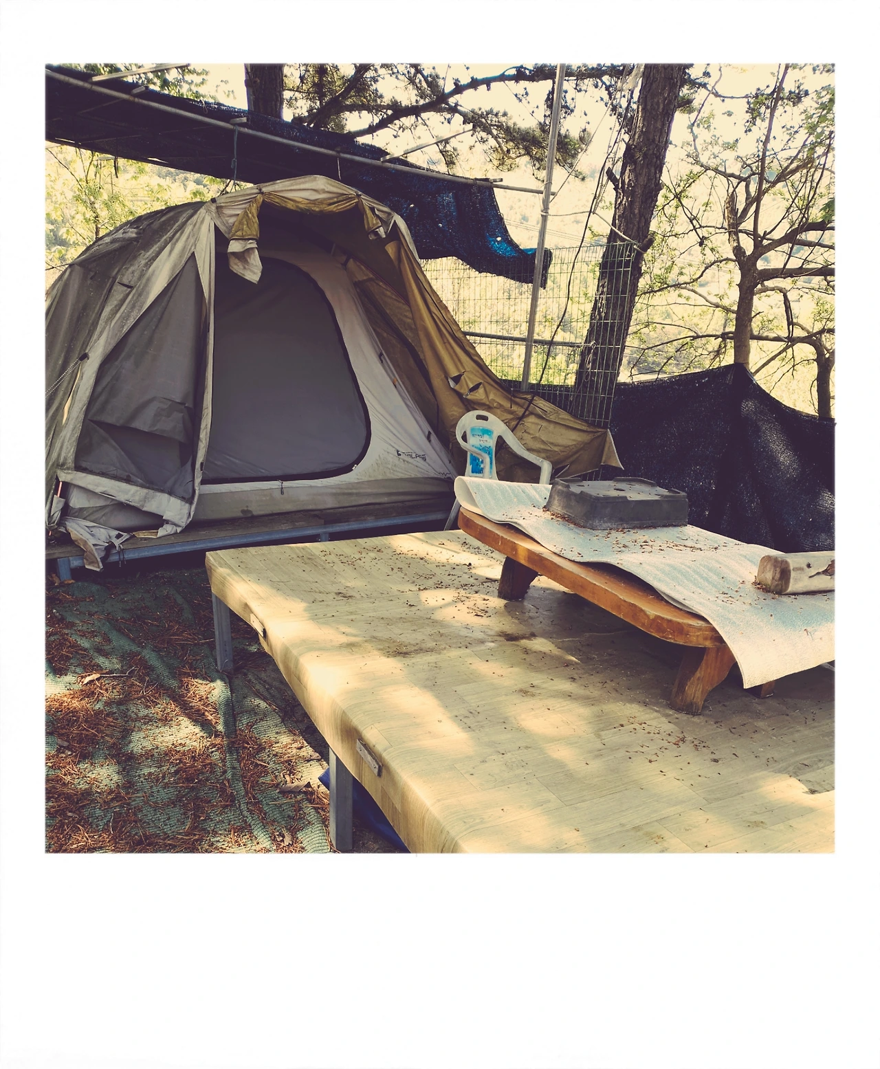 비닐하우스내 컨테이너와 각종 생활가구가 있는 곳에서 나혼자 쇼파에서 잤다. 말이 쇼파지 건강용품인 돌침대이다. 그래서 등은 따듯하게 얼굴은 춥게 잤다. 어린시절 그렇게 많이 경험했던 우풍이건만 한동안 단어조차 잊고 있었다.