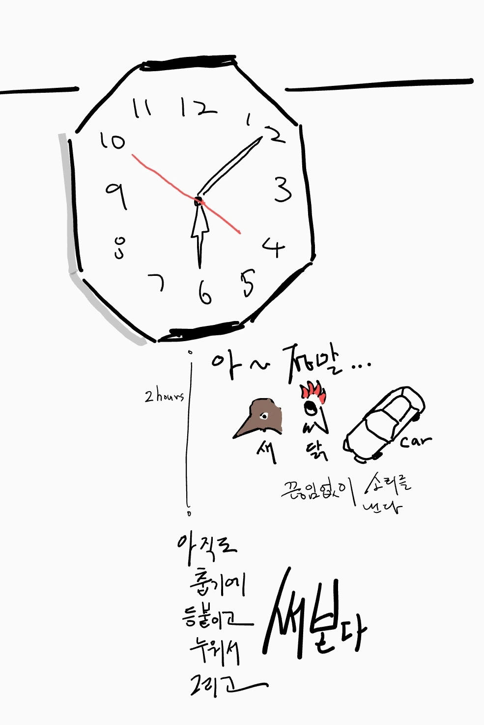 춥고 시끄러우니 잠자기 힘들구나라는 생각을 하며 하루 전의 일상을 고마워해본다. 도시의 삶에서 층간소음이 문제라고 하지만 벽없는 시골에서는 상하좌우가 모두 오픈되다보니 다양한 소리에 속수무책이 된다.
