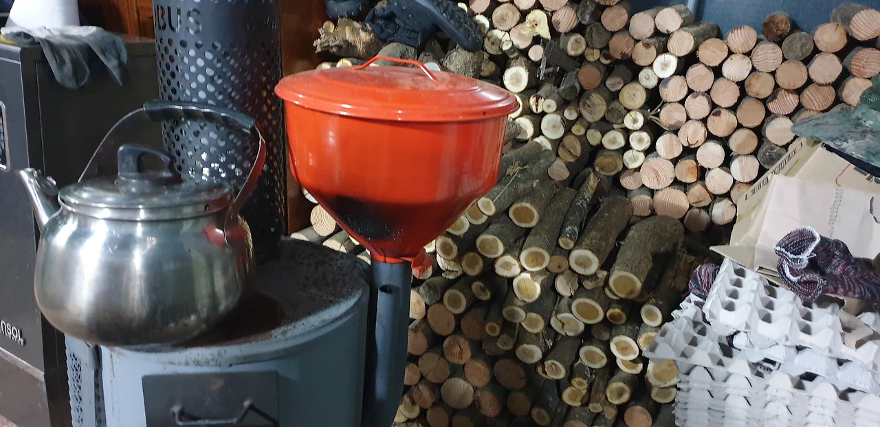 계속 누워있다가 7시가까이 되어서 부엌의 난로를 켜보았다. 화목난로라 바로 반응하고 불멍을 하게되니 나름 운치는 있어보인다. 단지, 결코 조용하지 않은 시골소음에 스트레스를 받았을 뿐이다.