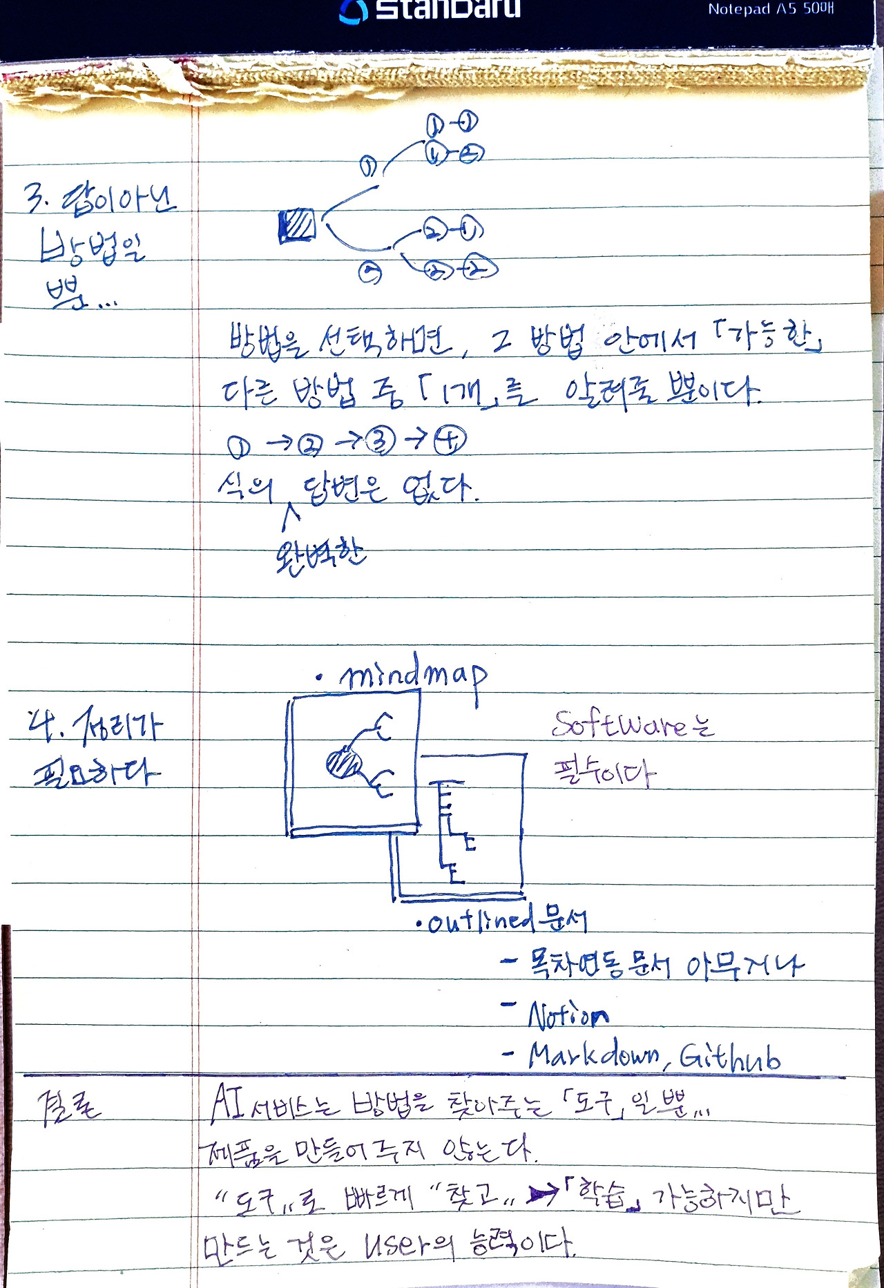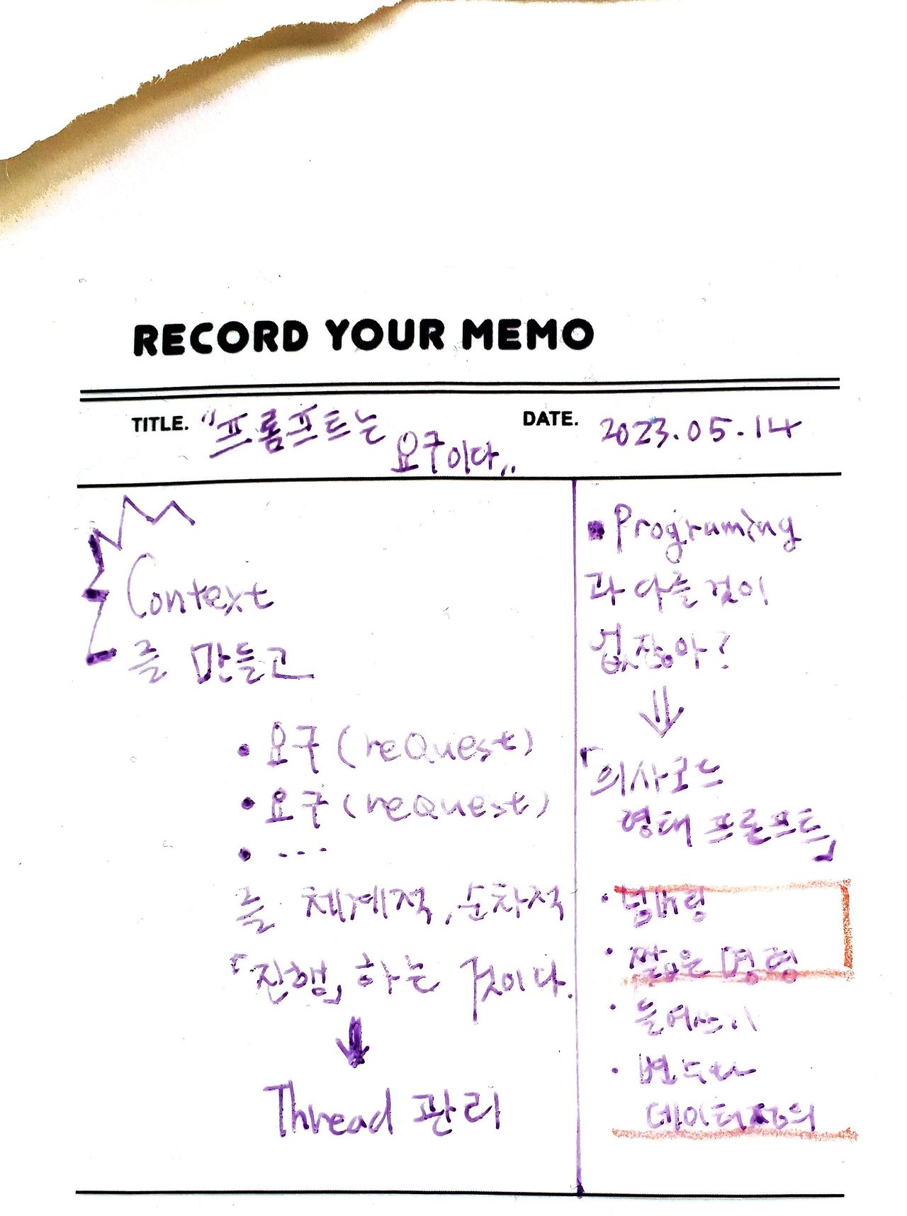 단숨에 읽었다. 아니 단숨에 정리했다. 정확히는 예상한대로 읽을 것이 없었다. 아무래도 “프롬프트를 다루는 법”을 재대로 설명한 서적은 아직 없을 것이다. 생성 ai에 프롬프트를 컨텍스에 대한 정의와 고려조차 하지않은 체 "법칙없는 질문"만 나열했다.