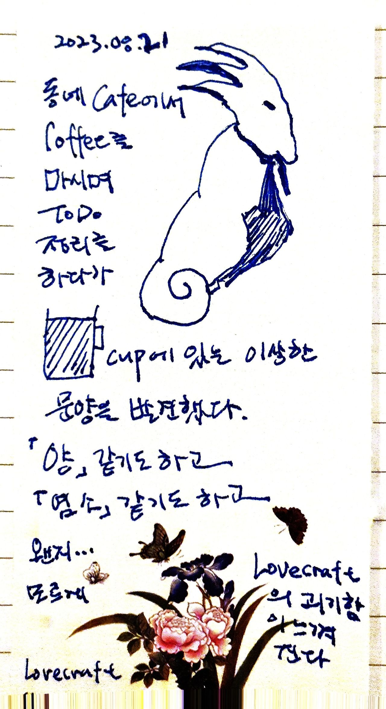 동네카페에서 커피를 마시다가 컵에 그려진 문양을 보고 러브 크래프트를 생각했다.