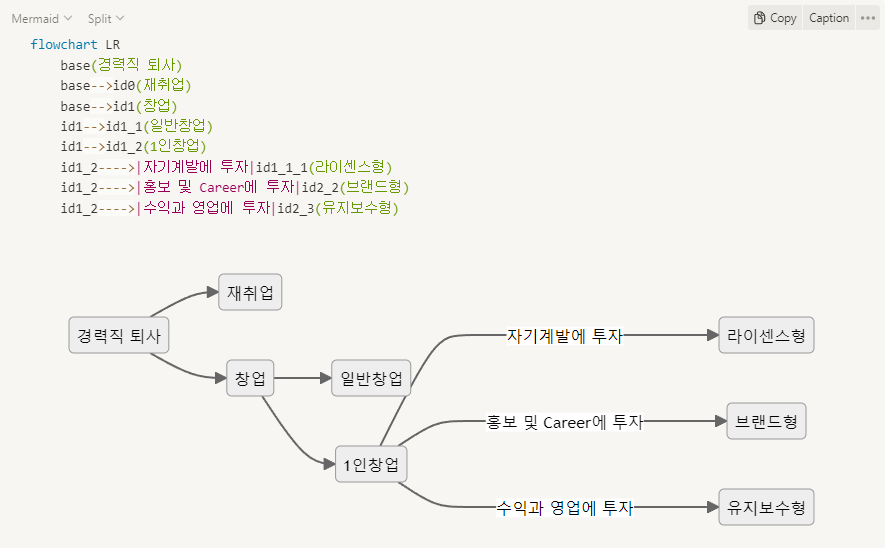 경력직들이 퇴사 후, 재취업을 하는 경우도 있지만 때에 따라 “창업”을 하는 경우도 있다. 여기서 창업도 조직을 운영하여 매출을 극대화하려는 일반창업이 있을 수 있으며 "나 혼자 창업"하는 1인기업의 형태가 있을 수 있다. 십수년 전부터 SOHO라는 용어가 나오면서 1인창업이 전문화, 세분화 되어가고 있었기에 2023년 현재에는 1인기업의 활동을 어렵지않게 주위에서 볼 수 있다. 사회전반의 Infra(공유 오피스, 모바일 오피스[소프트웨어, 하드웨어])가 발전함에 따라 혼자서도 소규모의 회사를 꾸려나갈 수 있는 환경이 되었기 때문이다.