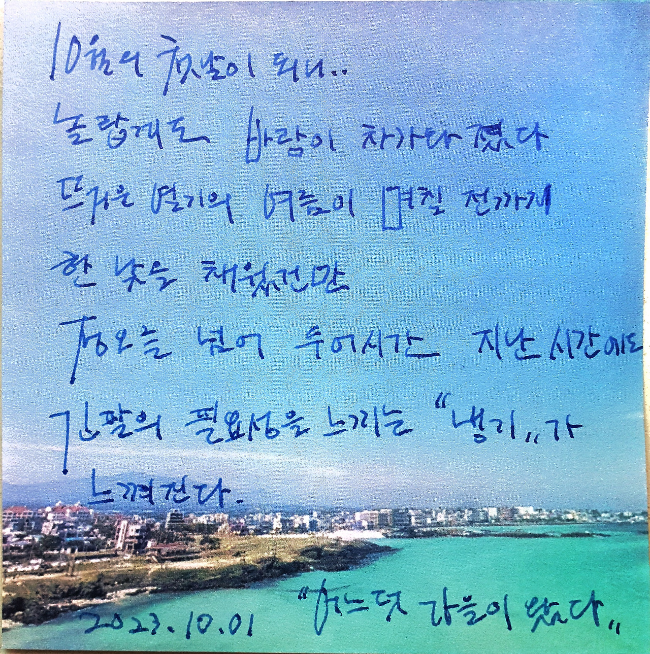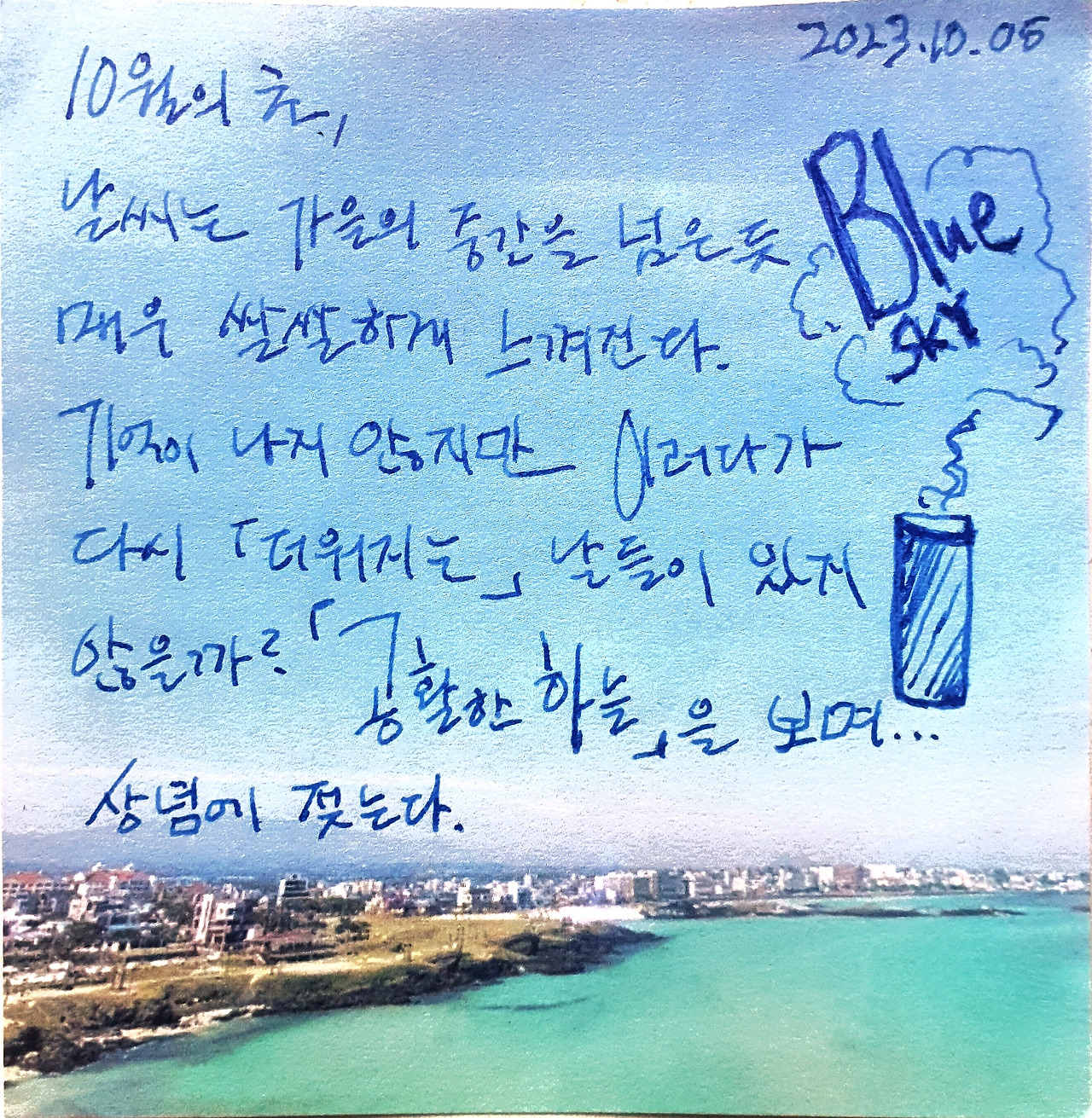 바람의 온도를 느꼈고 도망가는 고양이를 보며 안스러워했으며 평일 오후의 고궁을 보며 시간여행을 했다. 어설픈 문장보다 “가을의 하늘”을 사진과 그림낙서 몇 개로 가을감정을 표현하고 싶어한다.