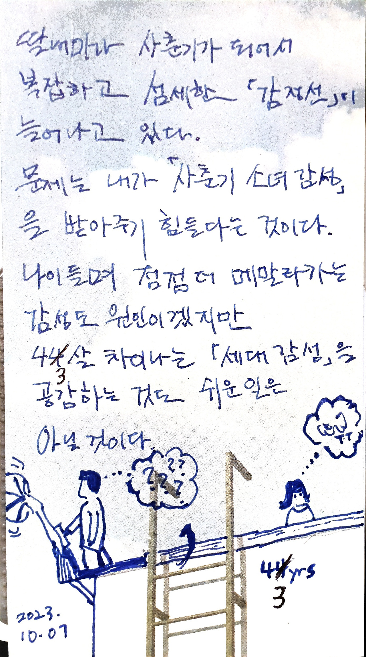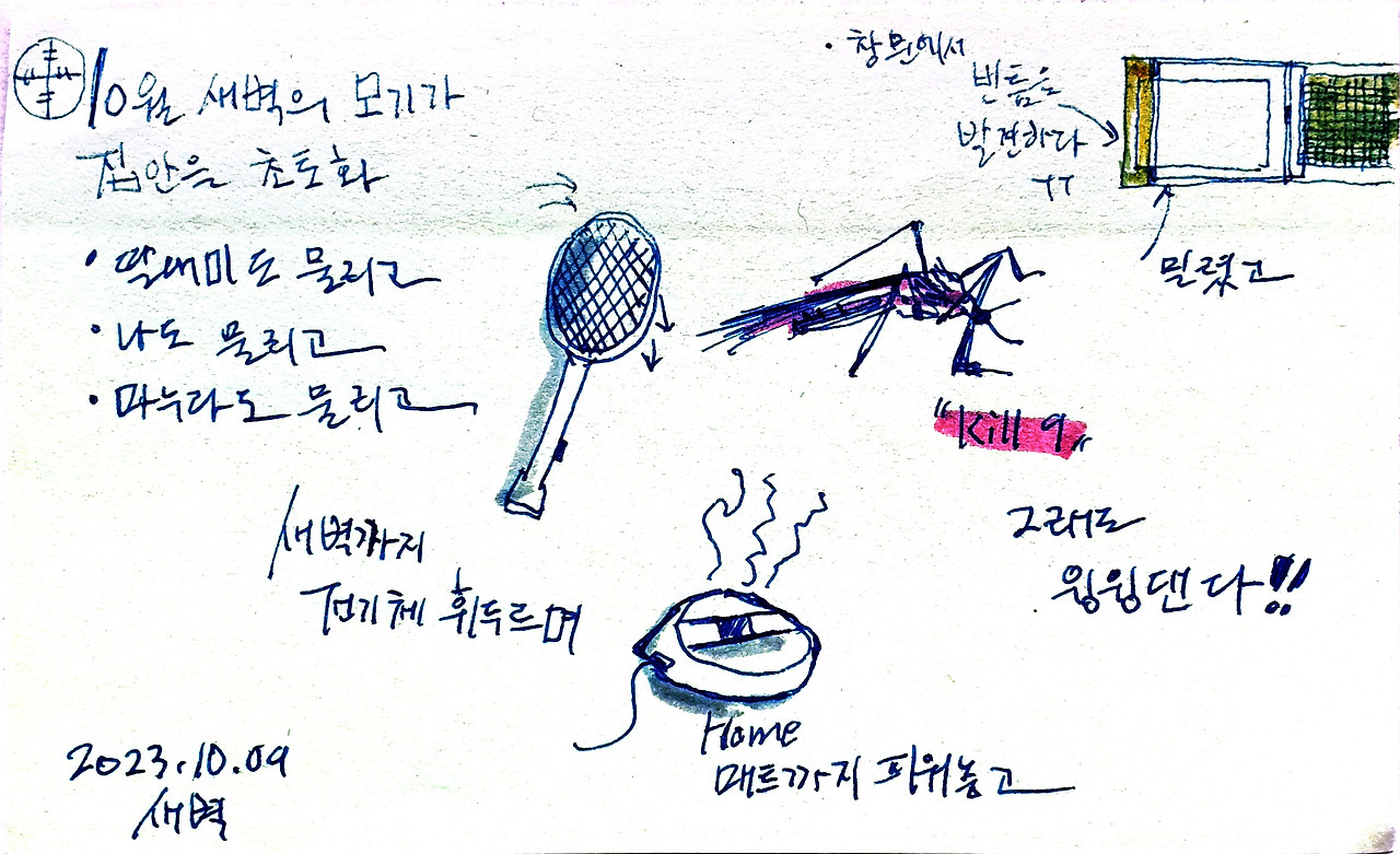 사춘기 딸내미의 변화무쌍한 감성에 점점 더 고민이 깊어간다. 사회의 모든 현상에 불신이 생긴다. 나이가 들 수록 깊어진다. 해봤자 소용없는 걱정까지 한다. 모기는 어차피 1달 후에는 멸종될 것이다.