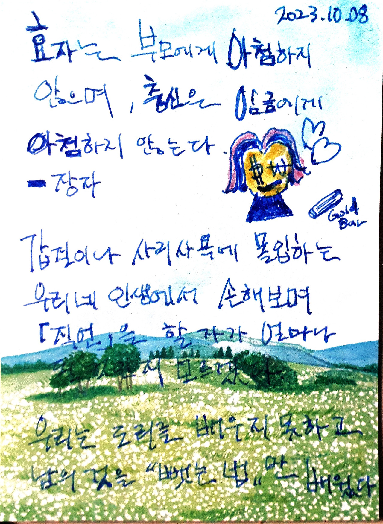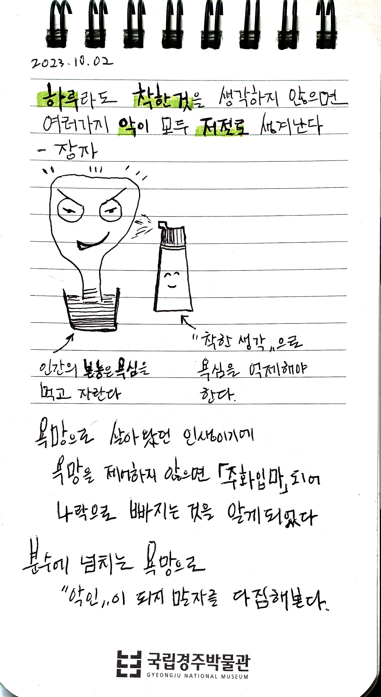 욕심으로 주화입마 (走火入魔)되지말자. 오늘에 만족하는 안분지족(安分知足)한 삶을 유지하자. 사람을 통해 반면교사(反面敎師)하며 연쇄긍정마가 되자
