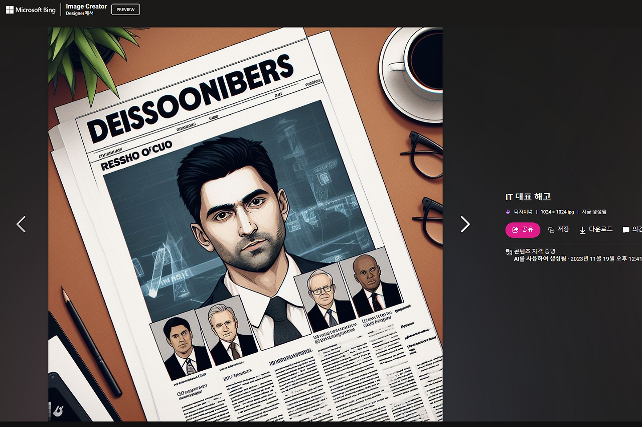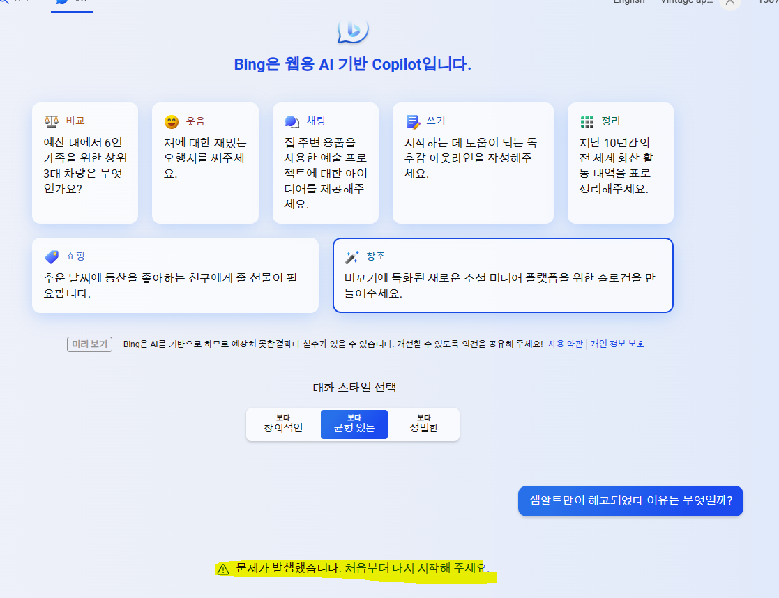 반면, GPT와 콜라보레이션을 하고 있는 Microsoft의 Bing은 어떨까?라고 생각하고 프롬프트를 다음과 같이 던졌다.