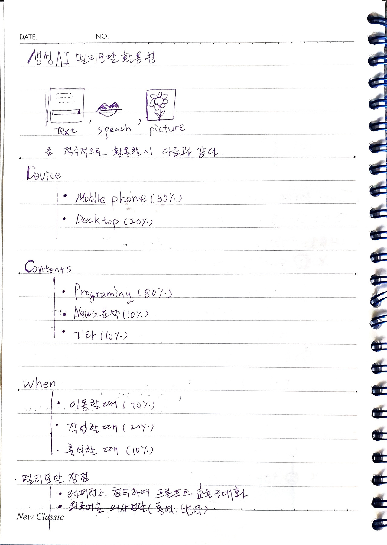 개인적으로 멀티모달을 사용할 때는 ChatGPT보다 제미나이(Gemini)를 선호한다. 문서판독력이 비교우위에 있다고 판단하기 때문이다. 특히 Outline 글쓰기(들여쓰기 목차) 같은 시각적으로 구조적인 내용조차 “만족스러운 산출물”로 만들어준다. 그리고 pdf로 작성된 기술문서나 기획서를 분석할 때는 어떠한 생성 AI를 사용해도 만족스러운 결과를 얻어낼 수 있다.