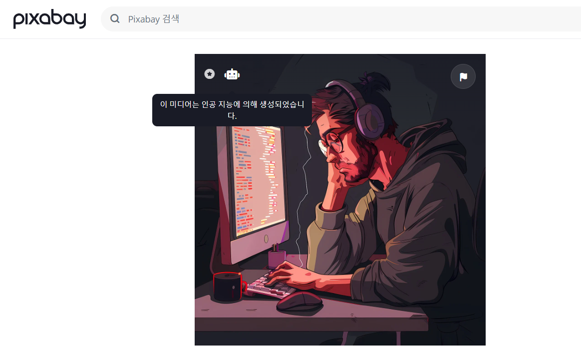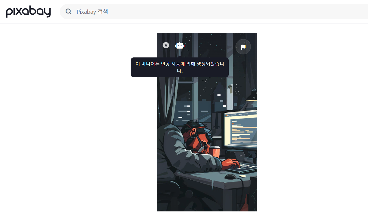 그리고 재미있는 것은 pixbay에서 좌측상단에 AI 표시를 아이콘으로 보여준다는 것이다.