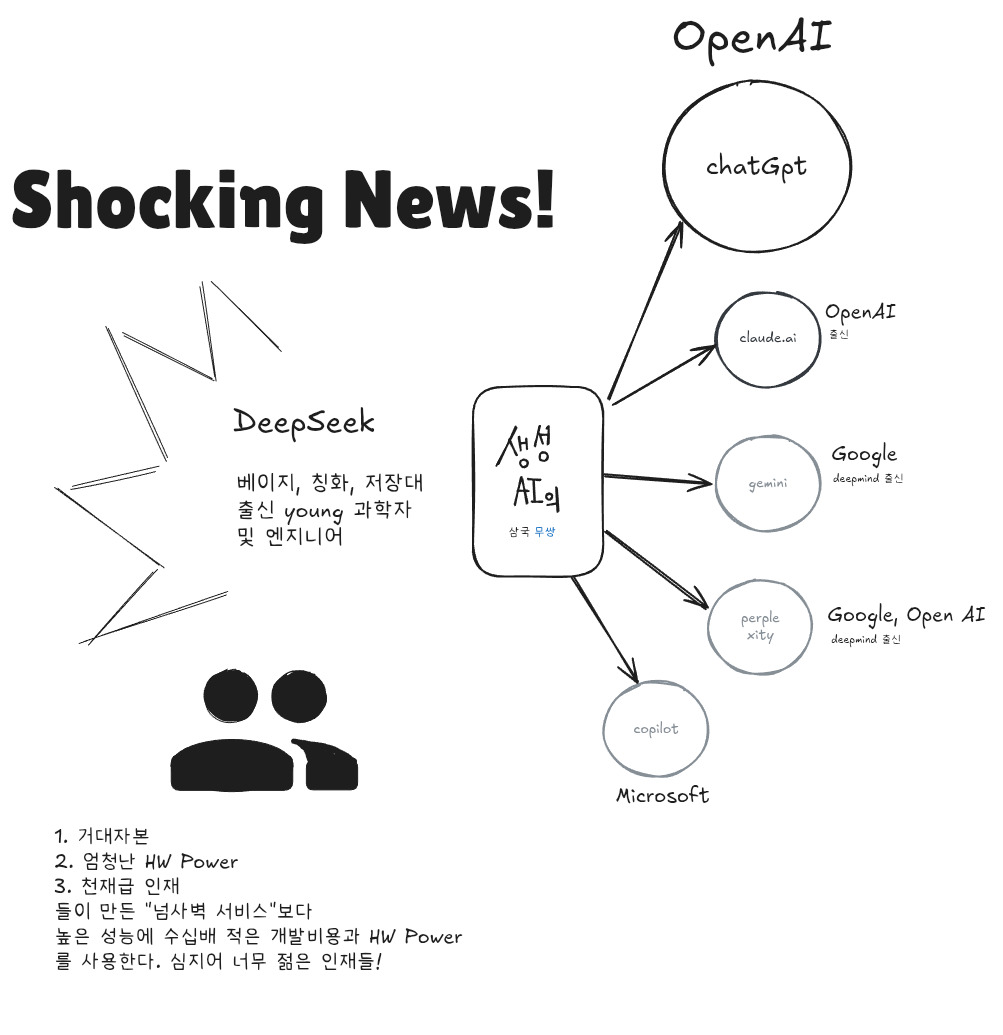 저번 주, 구정연휴가 시작될 즈음 지인들의 메신저에서 생소한 링크가 보이기 시작했다. DeepSeek 그리고 충격!이라는 말과 함께 꾸준히 공유되고 있었다.
