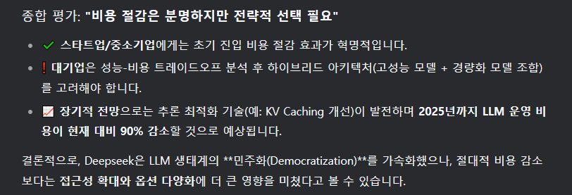 DeepSeek에거 가장 인상깊었던 것은 이미지 분석이다. 대부분의 생성 AI는 Object와 Text를 구분못하고 처리하는 경우가 많은데, 이 모델은 두 개를 분류해서 마음에 들었다. OCR 분야에서 활용할 것들이 많아졌다고 판단된다. 특히 문서처리 시스템을 개발할 시 OCR에 대한 신뢰도가 높아질 것 같다.