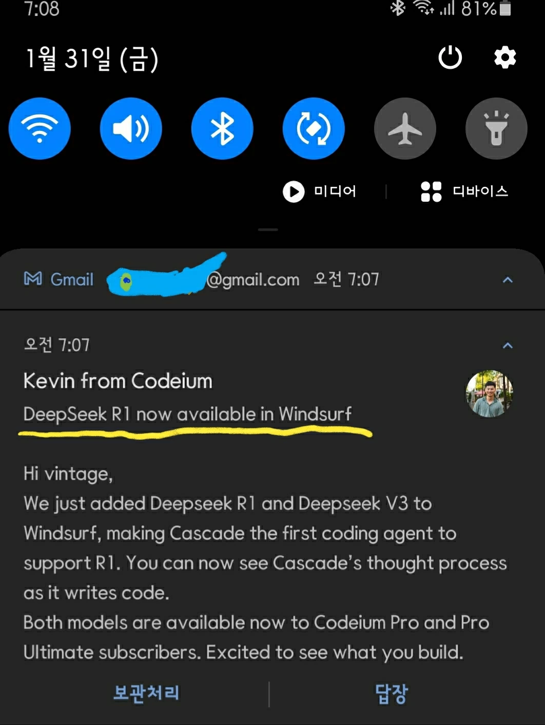 AI 어시스트 제품 군들 중에서 빠르게 deepseek로 전환한 windsurf. 생각보다 다양한 제품군에서 반강제적으로 사용하게 되지 않을까?코디엄같이 영향력있는 ai 코딩 어시스턴스 제품에 탑재되면 여파가 클 것으로 예상된다.