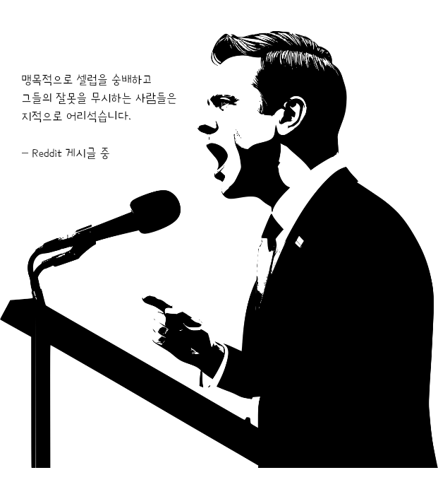 개인적으로 믿음을 버리지 않는 사람들이 비난을 하는 사람들보다 더 공감하기 힘들다. 강한 정서적 유대감을 느끼기 때문 일 수도 있다. 아니면 인지부조화(아는 심리학 용어가 몇 개 없다보니 해석하기 힘든 행동에는 이 말을 쓰게된다) 문제일 수도 있다. 그러나 결론적으로는 이해하기 힘든 케이스이다.