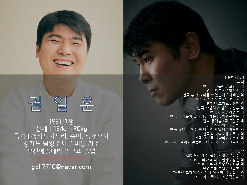 올려다본 그의 얼굴은 거칠었다. 미처 정리되지 못한 수염이 수컷 냄새를 더했다. 하지만 마주 앉은자리에서 너털웃음을 터뜨리자, 순식간에 순박한 이웃집 삼촌으로 분했다. 천의 얼굴을 타고나야 비로소 배우가 될 수 있음을 직감한 순간이었다. 그리고 무엇보다 눈빛이 깨끗했다. 깊게 팬 눈가 주름과 맑은 눈동자가 대비됐다. 지난 10여 년간 연극에 올인한 그의 진심이 고스란히 비칠 만큼 깨끗했다. 가족을 위해 세상과 타협하기로 결단한 마흔둘 아빠 권일훈 배우의 이야기다.