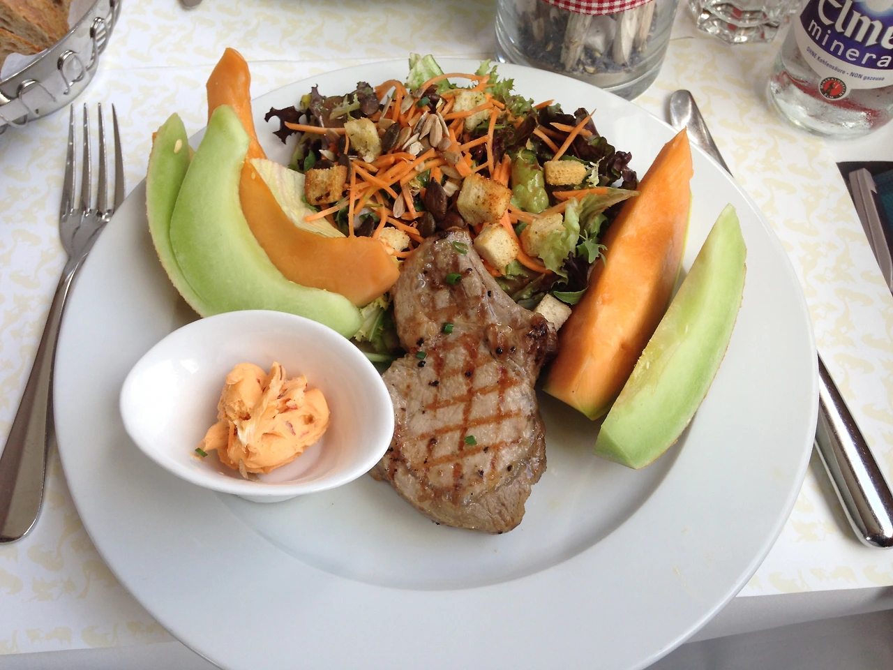그리고 식사 바우처가 제공된다. 식사는 메뉴에 있는 식사 중 하나를 선택할 수 있는데 빌헬름텔 특급에서 제공하는 바우처보다 비싸면 추가 금액을 내야 한다. 식사금액은 대부분 추가금을 내야 하는 금액이다. 우린 추가금을 지불해서 식사와 음료를 선택했는데 금액에 비해 만족도는 높지 않다. 양도 작고 여행 중 먹었던 저녁에 비하면 조금 아쉬운 수준이었다. 유람선에서 경치를 보며 식사를 할 수 있다는 점에 위안을 삼았다.