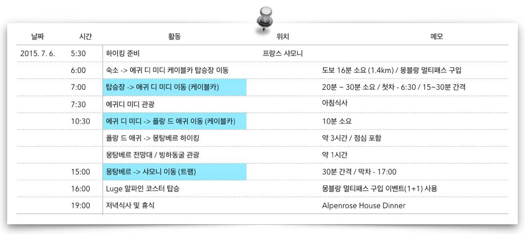 샤모니에서 여행을 하고자 한다면 몽블랑 멀티패스를 구매하는 것이 좋다. 몽블랑 멀티패스는 샤모니 시내의 모든 케이블카를 제한 없이 이용할 수 있는 통합권이다. 몽블랑 멀티패스가 있었기에 아침 일찍 에귀 디 미디에 올랐을 땐 구름에 가려 몽블랑을 제대로 볼 수 없었지만 오후에 구름이 개인 후 다시 에귀 디 미디를 올라가 몽블랑을 확인할 수 있었다. 또한 샤모니 곳곳을 보려 한다면 몽블랑 멀티패스가 훨씬 경제적인 듯하다.