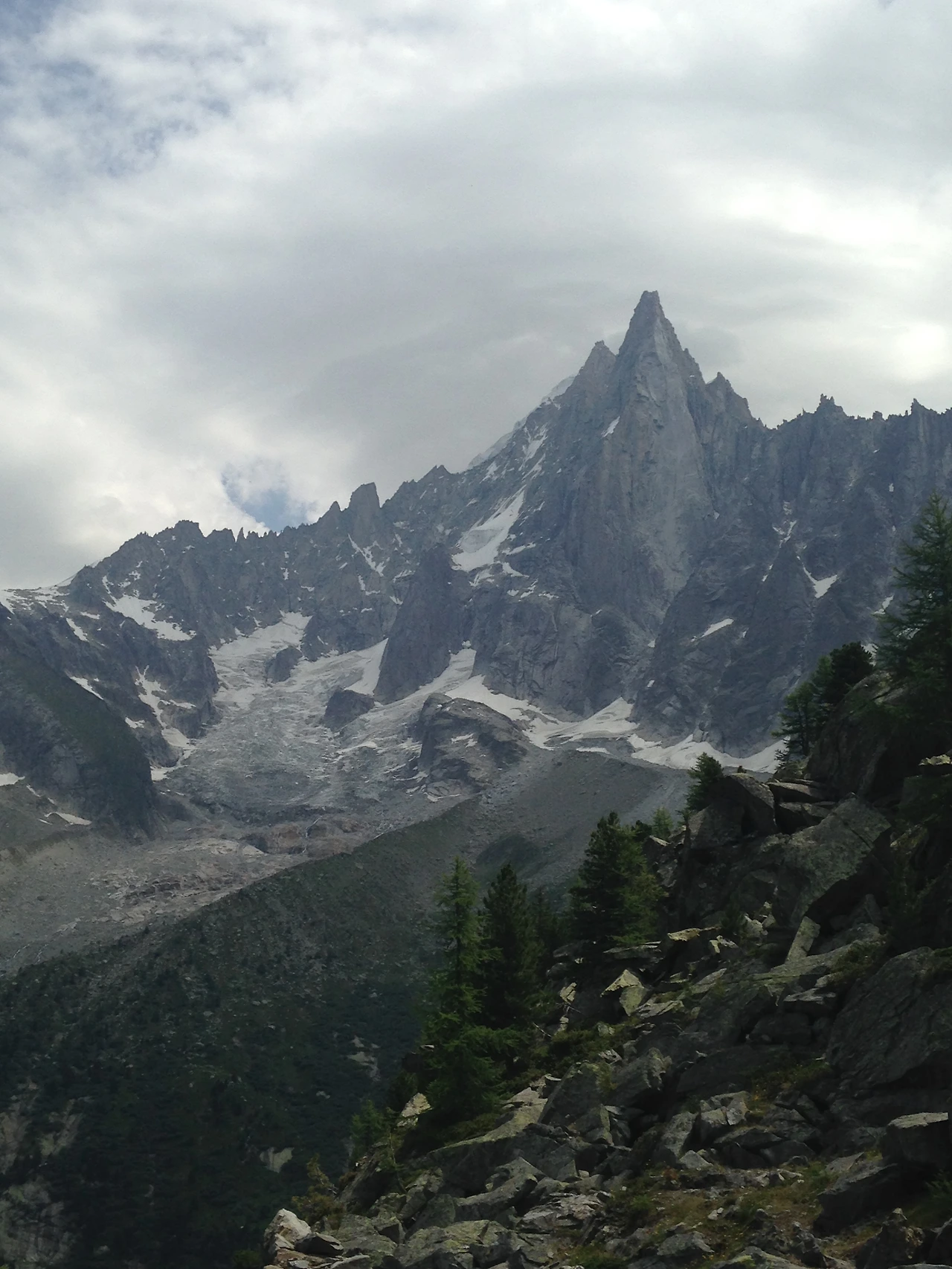 몽탕베르에 도착하니 젤 먼저 화려한 알프스 침봉들이 눈길을 끌었다. 그중 계속 우리를 안내했던 레 드뤼는 역시 6대 북벽이라는 유명세에 걸맞은 모습으로 눈길을 사로잡았다. 우린 알프스의 경이로움에 감탄하지 않을 수 없었다.