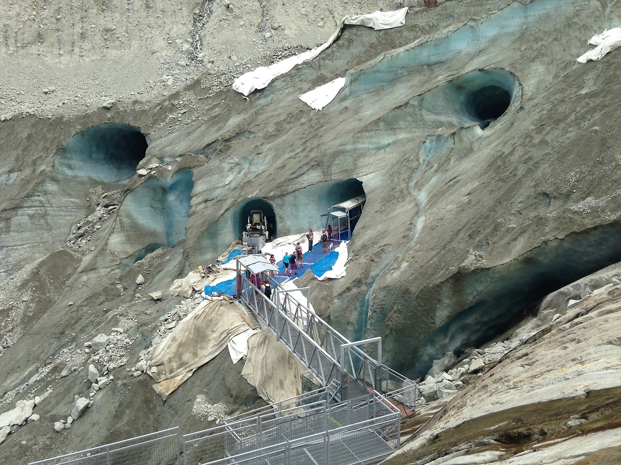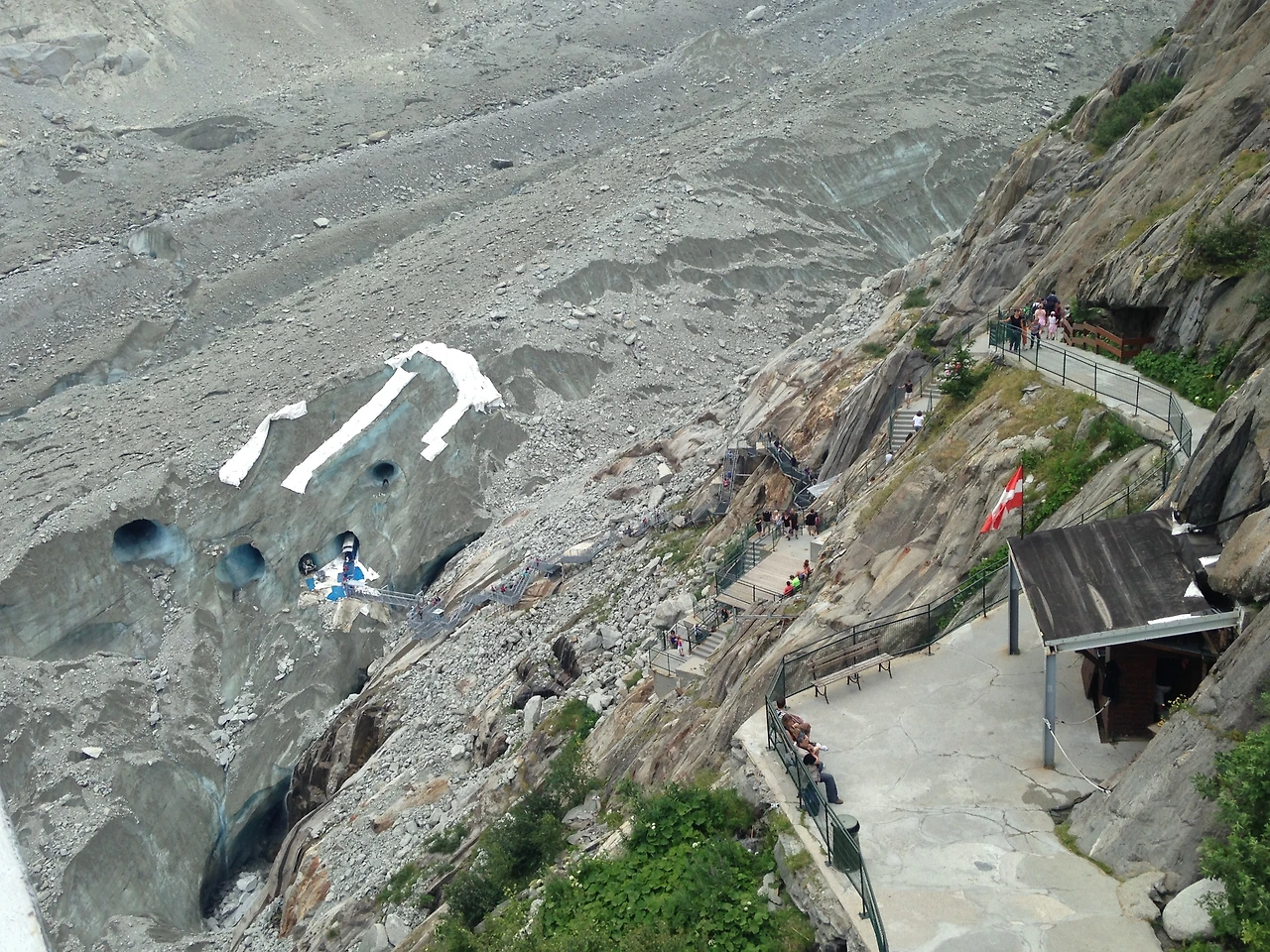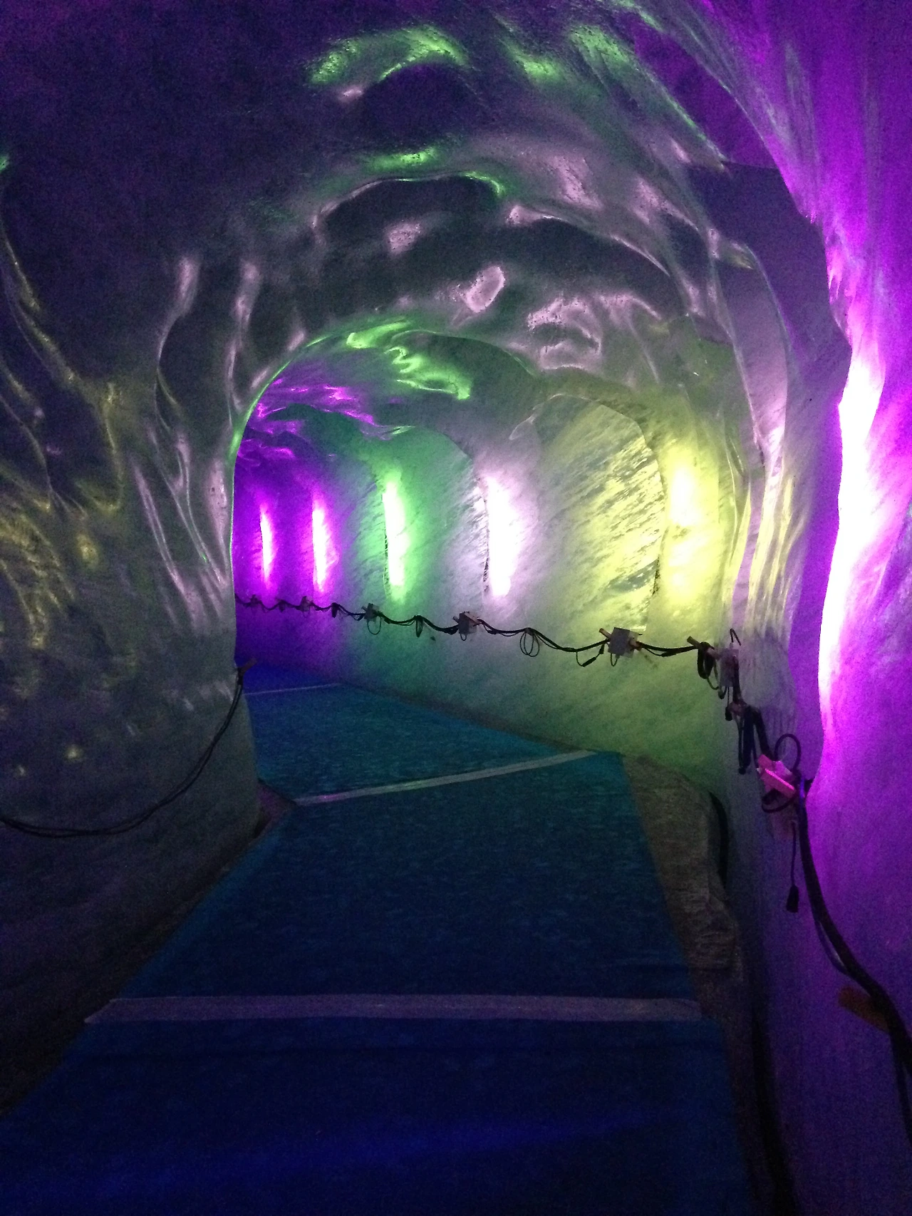 메르 드 글라스가 빙하로 되어 있어 아래에 빙하 동굴을 만들어 관광객들이 실제 빙하를 체험할 수 있도록 했다. 우린 에귀 디 미디에서 많은 시간을 소비한 관계로 빙하 동굴은 포기하려고 했는데, 다행히 다음 열차시간까지 여유가 있어 다녀오기로 했다.