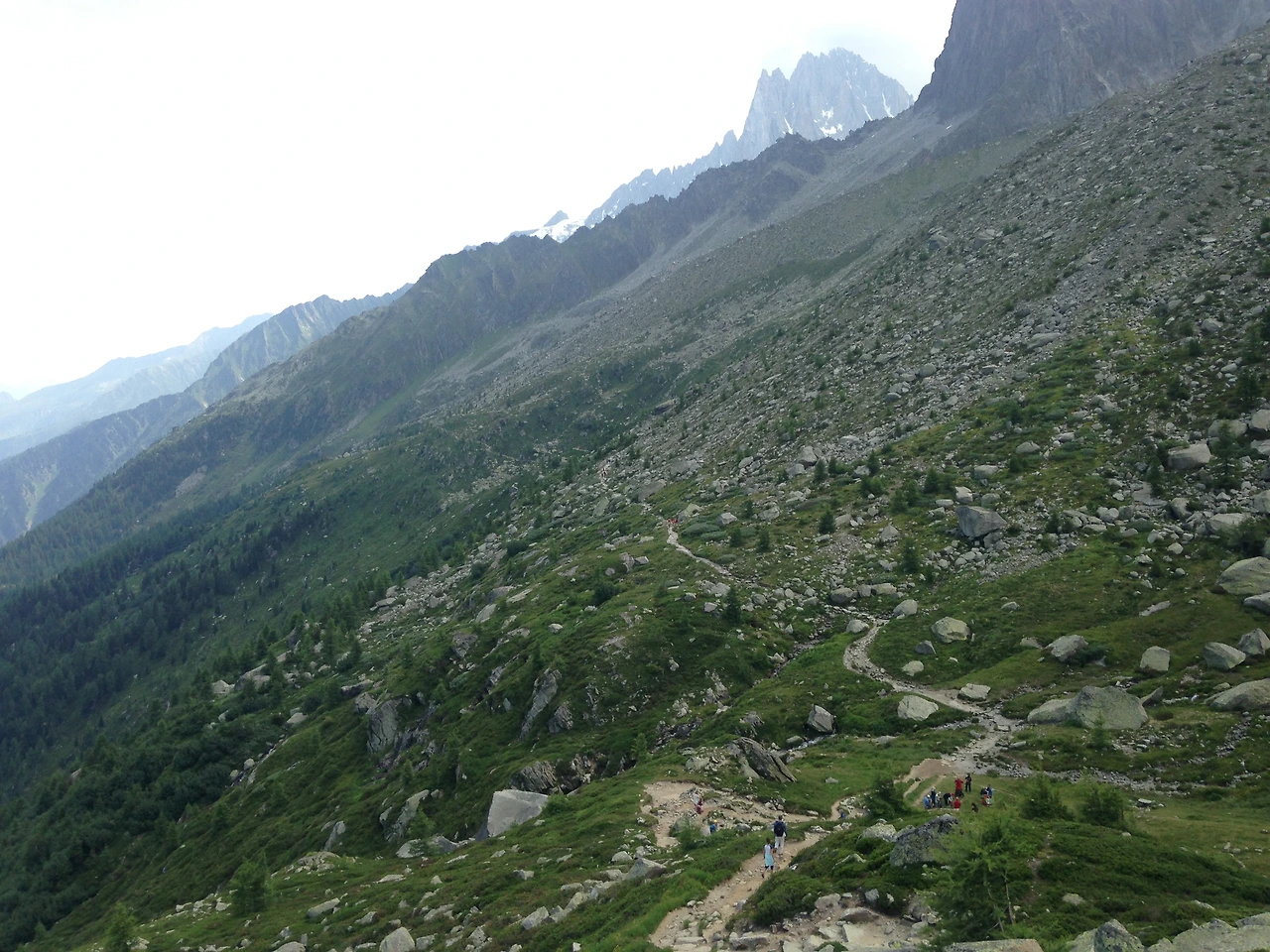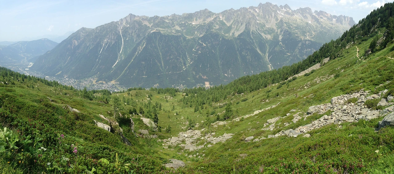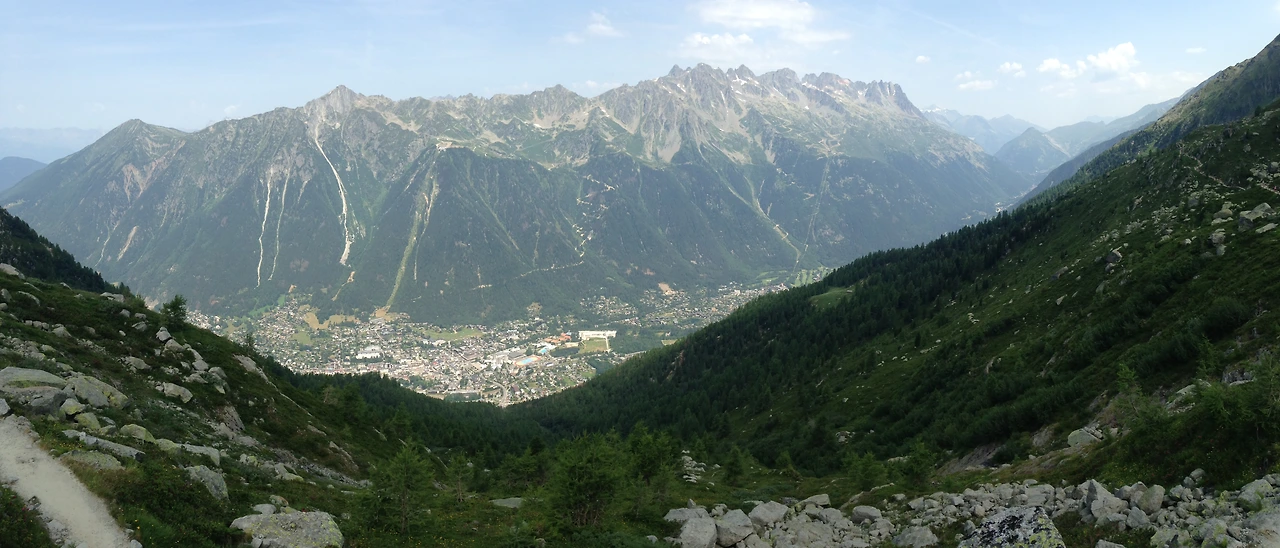 하이킹 코스가 높다 보니 샤모니 시내와 함께 다음날 하이킹 예정인 브레방-플레제르 산군이 한눈에 보였다. 이렇게 보니 몽블랑 산군과 브레방 산군 사이 계곡에 위치해 있는 샤모니 밸리가 제대로 머릿속에 그려졌다.