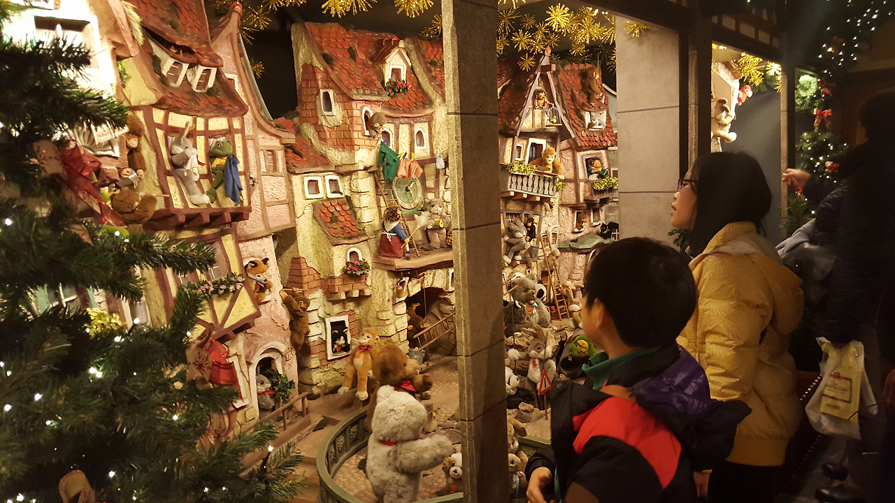 많은 사람들이 방문을 하다 보니 동선을 만들어 놓았다. 그래서 들어가는 통로와 나오는 통로를 구분해 두었다. 첨엔 장난감 상점이 얼마나 크겠나 싶었는데 안으로 들어가면 상당히 넓은 공간이 나타난다. 그리고 눈을 번쩍 뜨이게 하는 하얀색의 거대한 트리가 눈에 보인다.