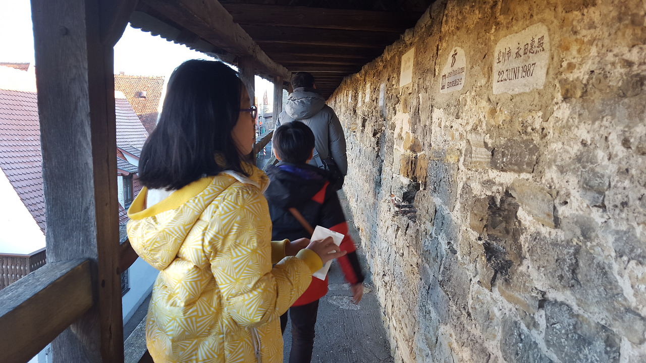 성벽엔 많은 사람들의 이름이 새겨져 있었는데 로텐부르크를 재건하는데 기부한 사람들의 이름을 새긴 것이라고 한다. 새겨진 이름을 보면 일본 사람들의 이름도 많이 있다. 일본이 로텐부르크의 재건에 적극적으로 지원을 했다고 하는데.. 2차 대전이라는 것에 대해 자유로울 수 없는 탓이었을까?.. 여러 가지 생각이 많아졌다.