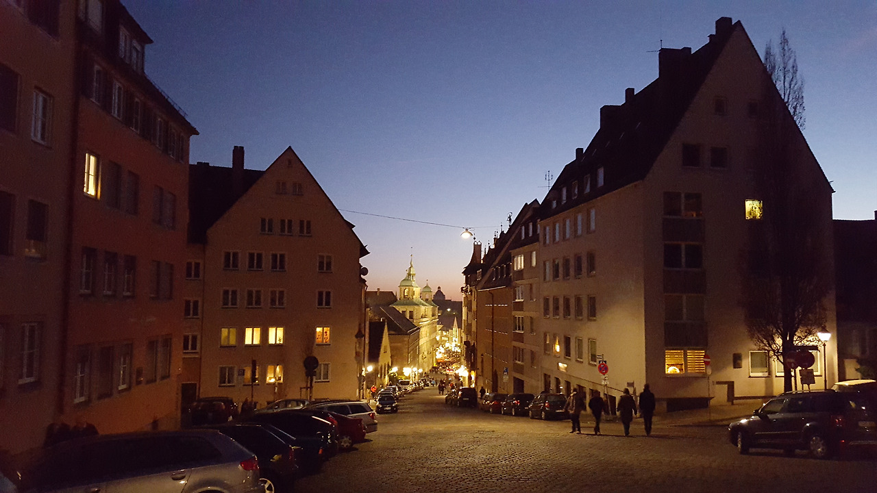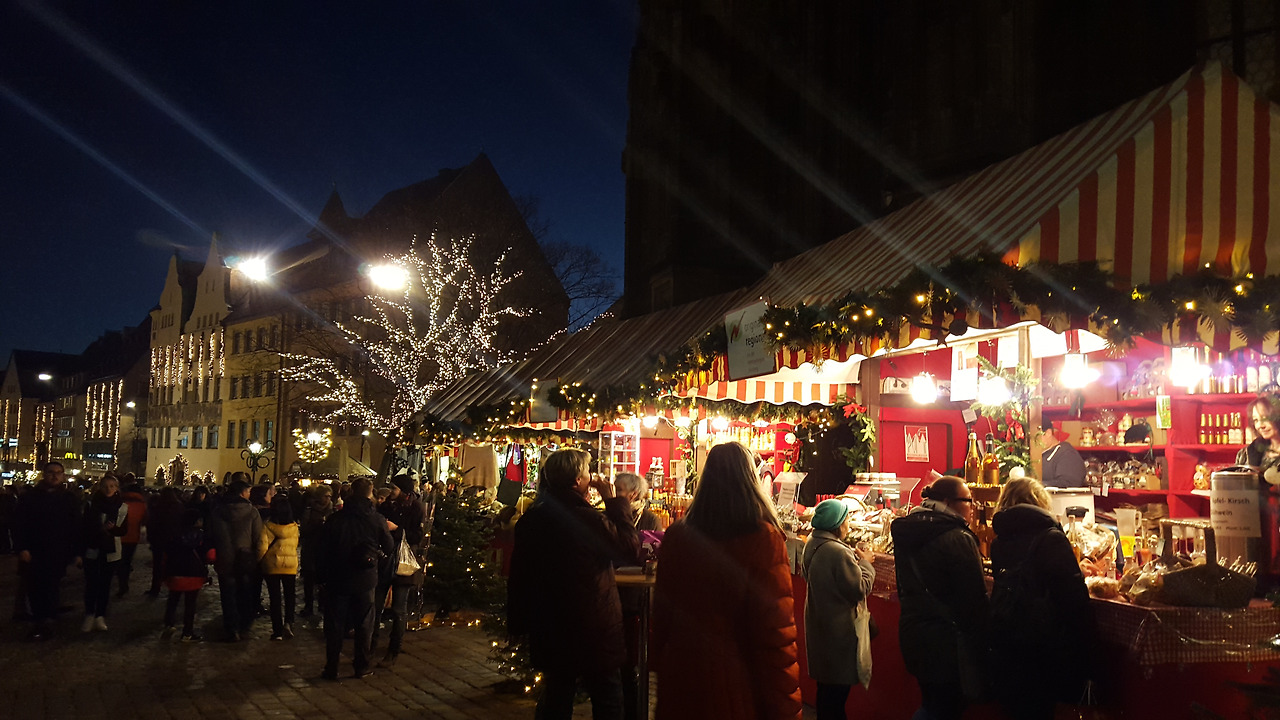 뉘른베르크의 크리스마스 마켓은 구시가지의 중심부인 중앙광장과 그 주변 곳곳에서 열린다. 숙소인 유스호스텔에서는 걸어서 10분이 채 걸리지 않는 거리이다. 숙소에서 나와 마켓을 향해 걸어가는데 어둠이 내리기 시작한 구시가지의 골목은 꽤 운치가 있었다.