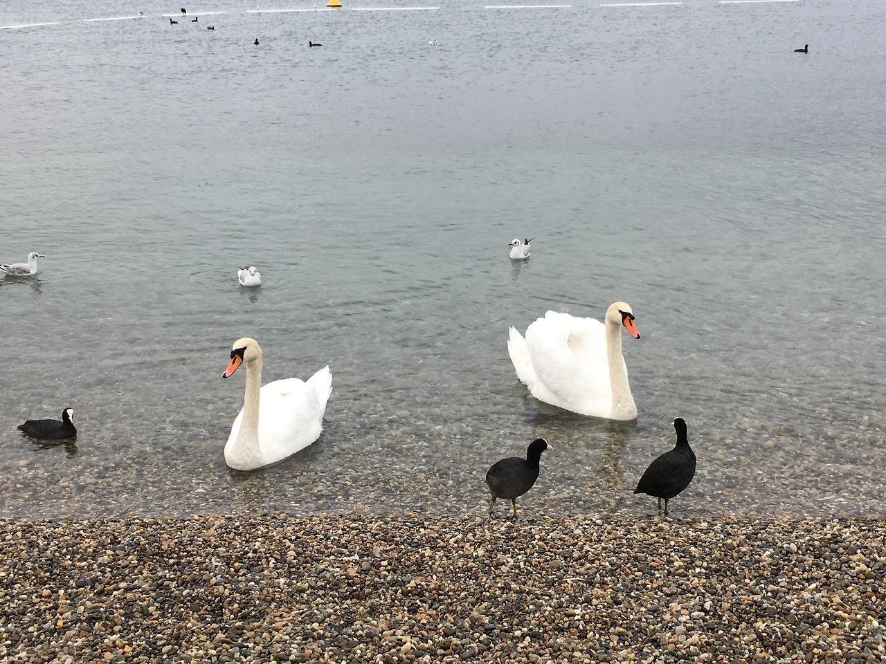 우리가 레만 호수를 보고 가장 놀란 것은 깨끗함이었다. 많은 배가 돌아다니고 있었지만 호수는 물 위를 배회하는 오리의 발이 보일만큼 깨끗했다.