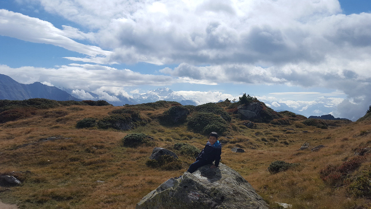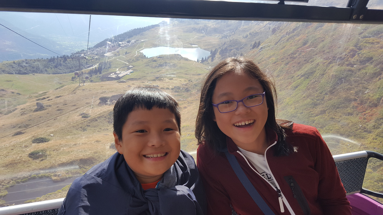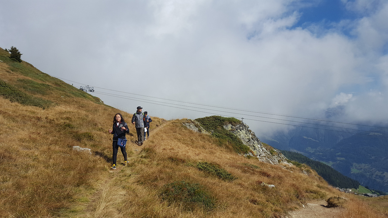 Greich를 지나자 케이블카의 아찔한 경사를 잊을 만큼 멋진 풍경이 나타나 창에서 눈을 뗄 수가 없었다. 산 중턱에 걸친 구름이 높은 산을 더 높아 보이게 하고 그 구름보다 더 높은 곳에서 바라보는 알프스 초원은 그저 감탄사 외에는 표현할 방법이 없었다. 풍경도 풍경이지만 무엇보다 우리를 즐겁게 한건 구름이 점점 걷히고 파란 하늘이 영역을 키워가는 것이었다.