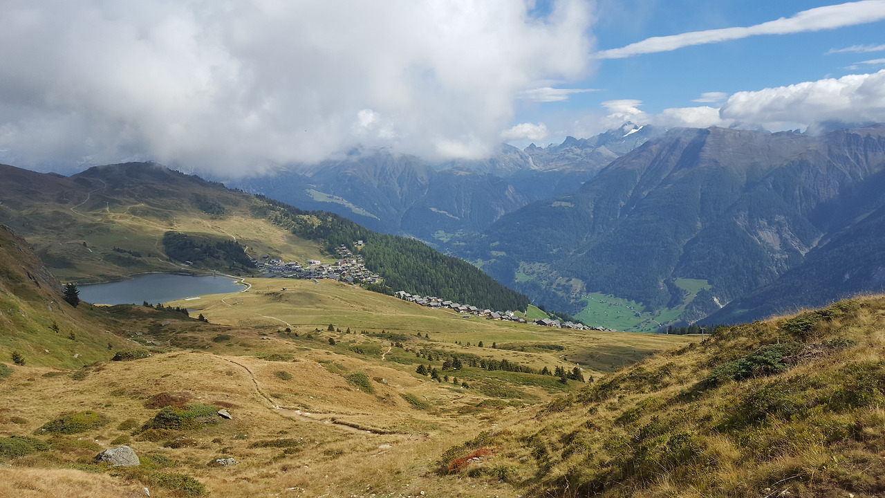 개인적으로는 산에 올라 가까이서 침봉을 바라보는 것보다는 이렇게 멀리서 하얀 꼬깔모를 쓴 알프스 산군을 보는 것을 더 좋아한다. 그래서 무스플루에서 내려오는 길이 전혀 심심하지 않다.