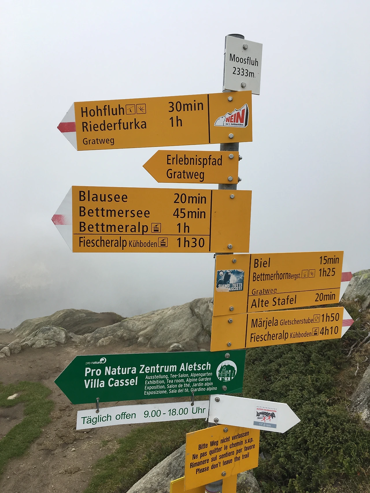 무스플루(Moosfluh)에서 베트머호른(Bettmerhorn)까지 바로 갈 수 있는 하이킹 코스가 있지만 아이들이 있다 보니 길이 험할 것이 우려되어 쉬워 보이는 코스를 선택했다.