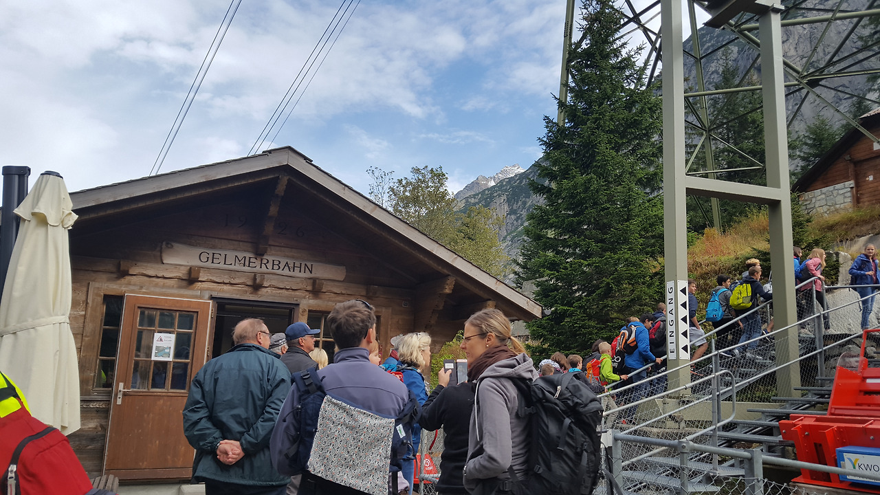 구름다리를 건너면 겔머 푸니큘라 매표소와 바로 연결된다. 이곳에서 표를 구매할 수도 있지만 예약이 차서 원하는 시간에 탈 수 없거나 혹은 매진이 될 수도 있기 때문에 미리 예약을 하는 것이 좋다. 미리 예약한 표를 이곳에 보여주면 탑승권으로 교환해주며, 15분 전까지는 도착해서 탑승권을 교환하도록 안내하고 있다.