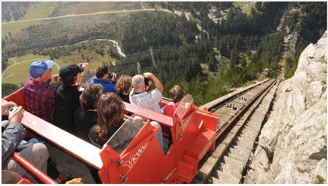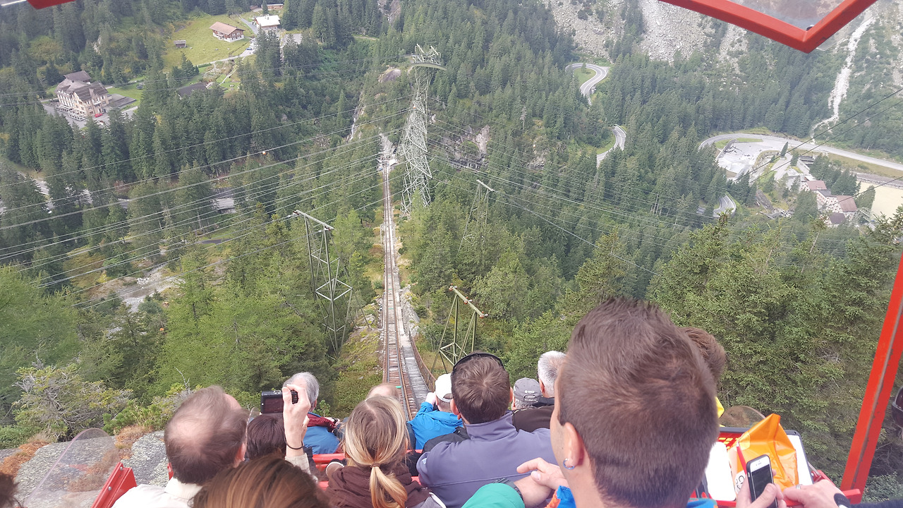 겔머 푸니큘라는 106도의 경사도를 자랑하며 유럽에서 가장 가파른 푸니큘라라고 한다. 이번 여행을 준비하면서 겔머 푸니큘라를 제안하자 그게 뭐냐고 묻는 조카와 누나에게 스위스 관광청에 소개된 사진을 보여주었더니 망설임 없이 여행지로 선택되었다.