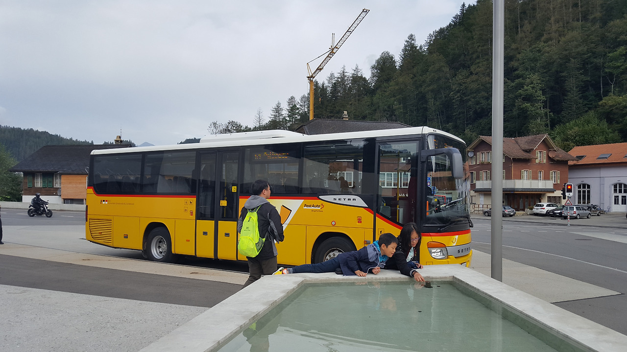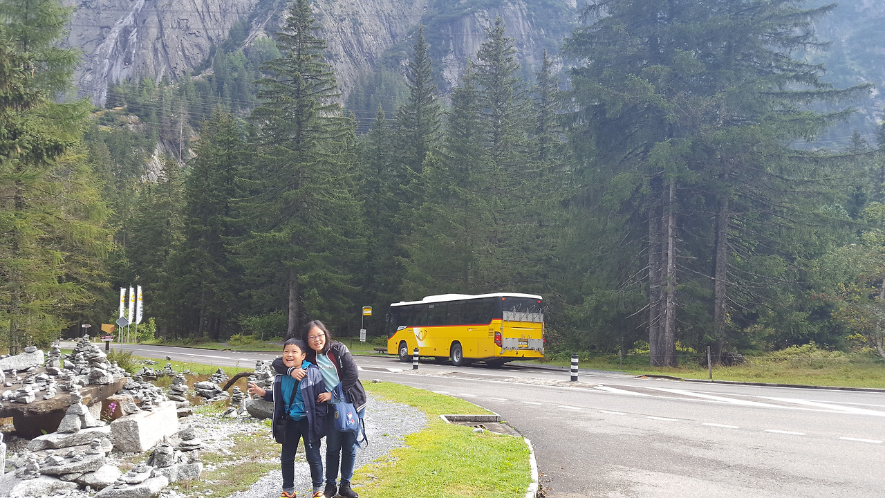 시골마을을 지나 인적이 보이지 않는 산길을 한참을 달린 버스는 꽤나 깊이 들어간다고 느낄 때쯤에 버스의 종점인 한덱, 겔머반(Handegg, Gelmerbahn) 정류소에 멈췄다. 우리가 버스에서 내리자 기사님께서 같이 내려 버스 시간표를 주시면서 시간 잘 확인하고 내려오라며 설명을 해주셨다. 그리고 겔머 푸니큘라를 타는 곳으로 가는 길을 알려주시며 즐거운 여행 하라는 인사도 잊지 않으셨다. 멋진 경치에 버스 기사님의 친절함이 더해지니 스위스에 대한 이미지가 훼손되기는 힘들 것 같다.