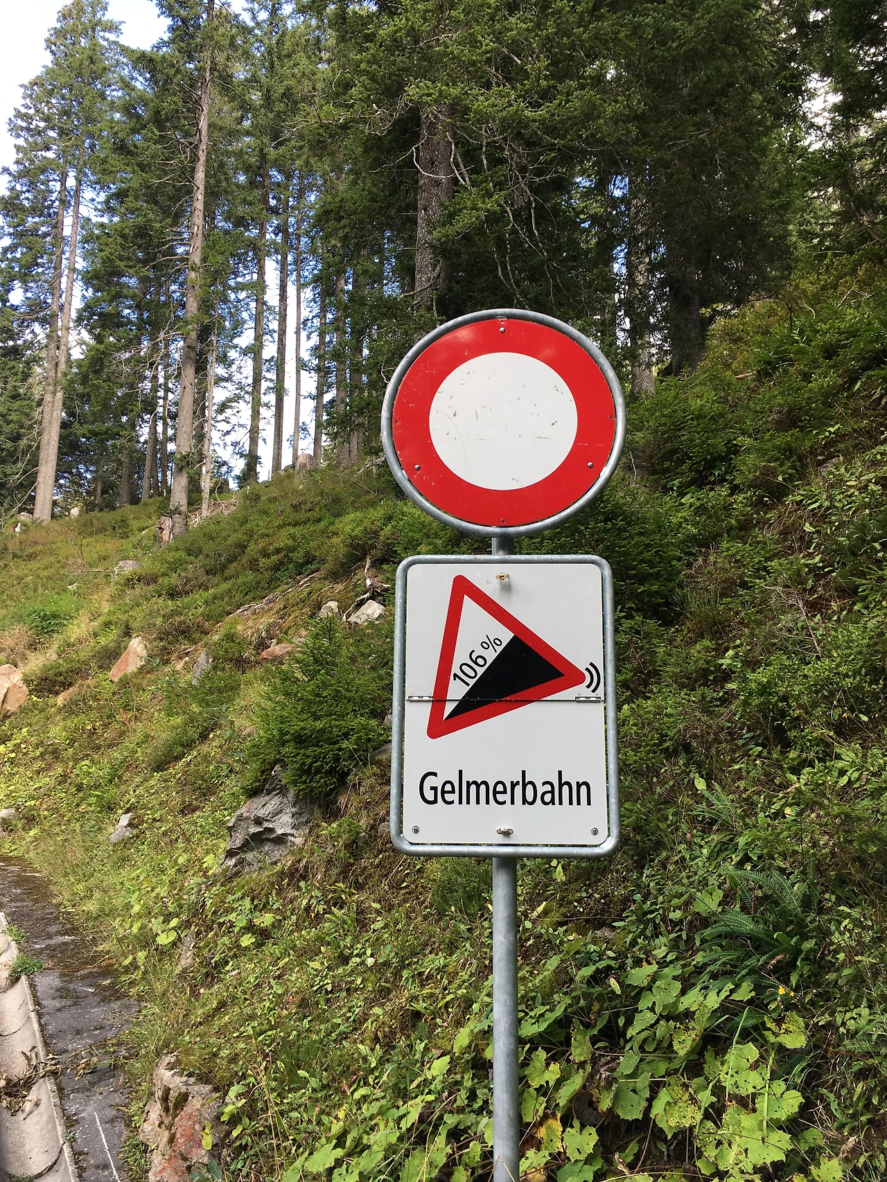 겔머 푸니큘라는 단선 레일이기 때문에 올라갈 때는 뒤로 올라가고 내려올 때는 정면 방향으로 내려온다. 그래서 항상 아래쪽을 바라보도록 되어 있기 때문에 더 아찔함을 느낄 수 있는 것 같다.