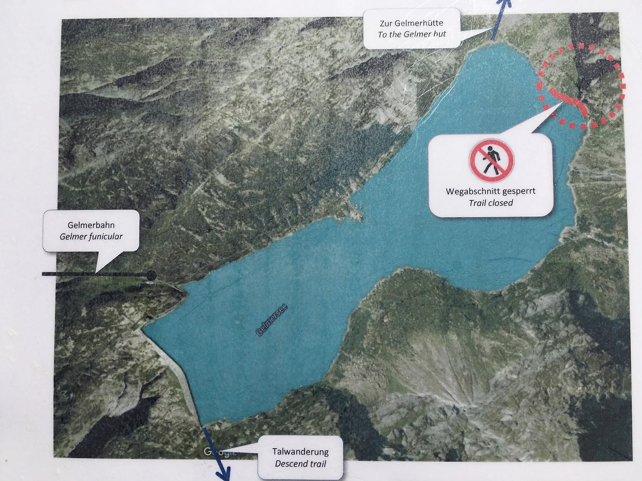겔머호수는 수력발전에 이용되는 물을 저장하고 있는 호수인데 호수 주변으로 2시간 정도가 소요되는 산책로가 있다. 우리도 호수 주변을 산책한 뒤 내려올 계획으로 왕복 티켓을 구매했지만 안타깝게도 낙석으로 연결된 일부 구간이 끊어져 중간지점까지만 갔다가 돌아와야 했다.